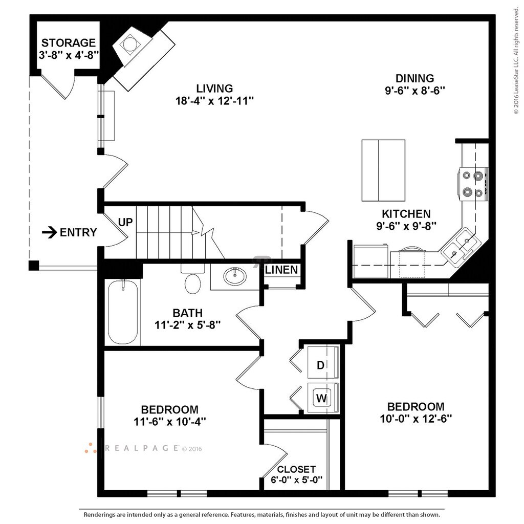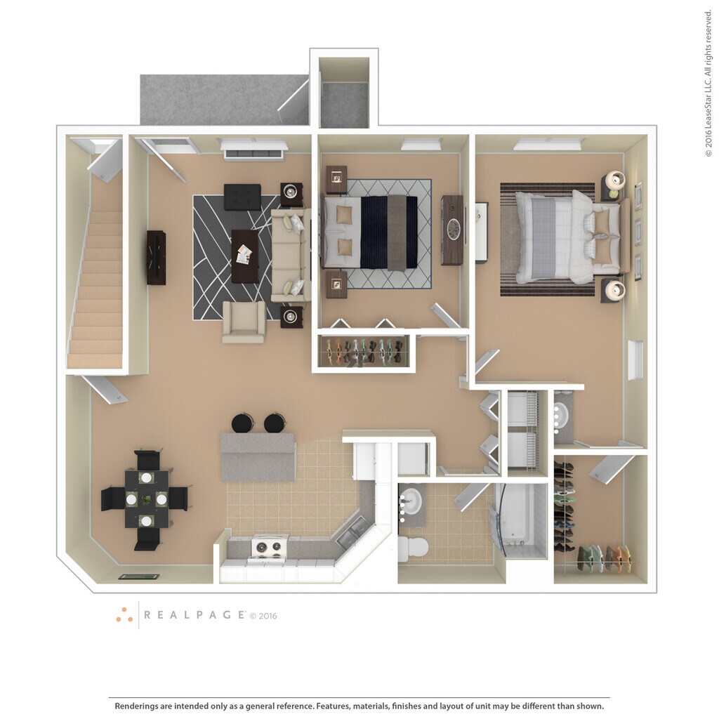 Modelo de apartamento: Two Bedroom 1179$1,0912 Dormitorios, 1 Baño, 1102 sq ftNo Disponible![]()