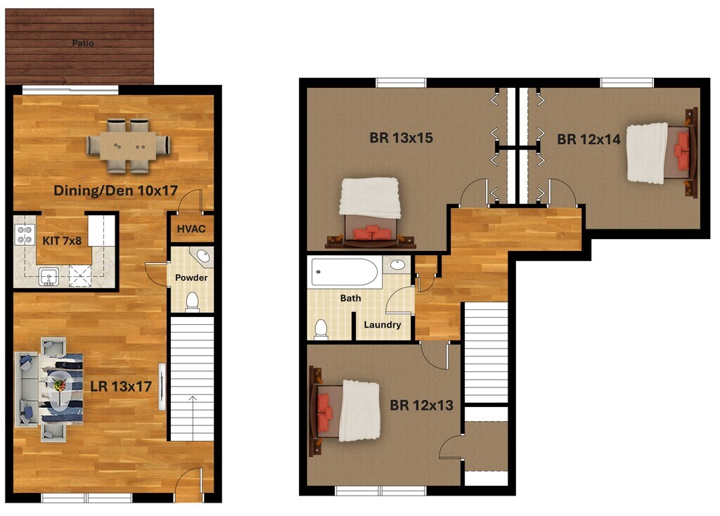 Modelo de apartamento: Two Bedroom 1.5 Bath TownhouseDesde $1,2052 Dormitorios, 1.5 Baños, 1140 sq ftDisponible AhoraPlanosFotos![]()
