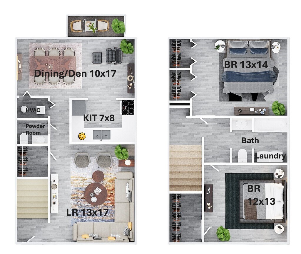Modelo de apartamento: One Bedroom 1.5 Bath TownhomeDesde $1,0581 Dormitorio, 1.5 Baños, 1009 sq ftDisponible Ahora![]()