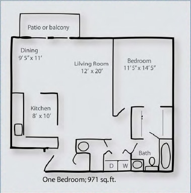 Modelo de apartamento: One Bedroom One BathLlame para Precios1 Dormitorio, 1 Baño, 971 sq ftNo DisponiblePlanosFotos![]()