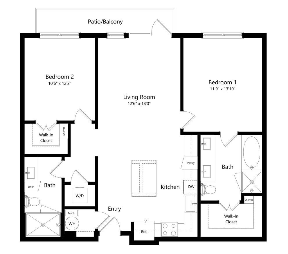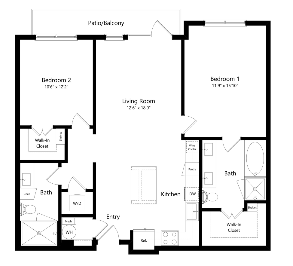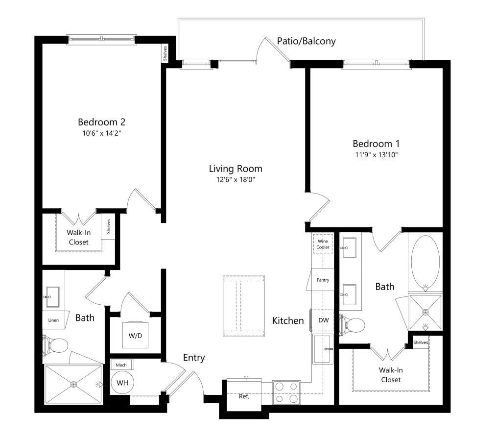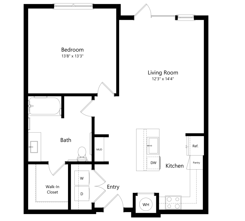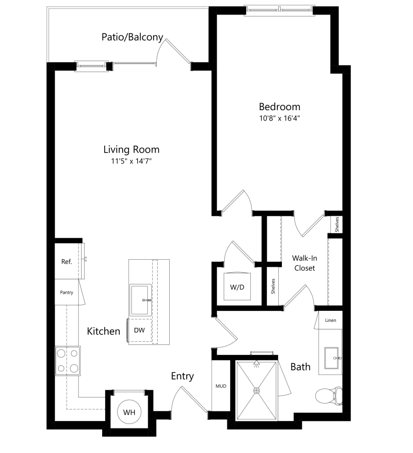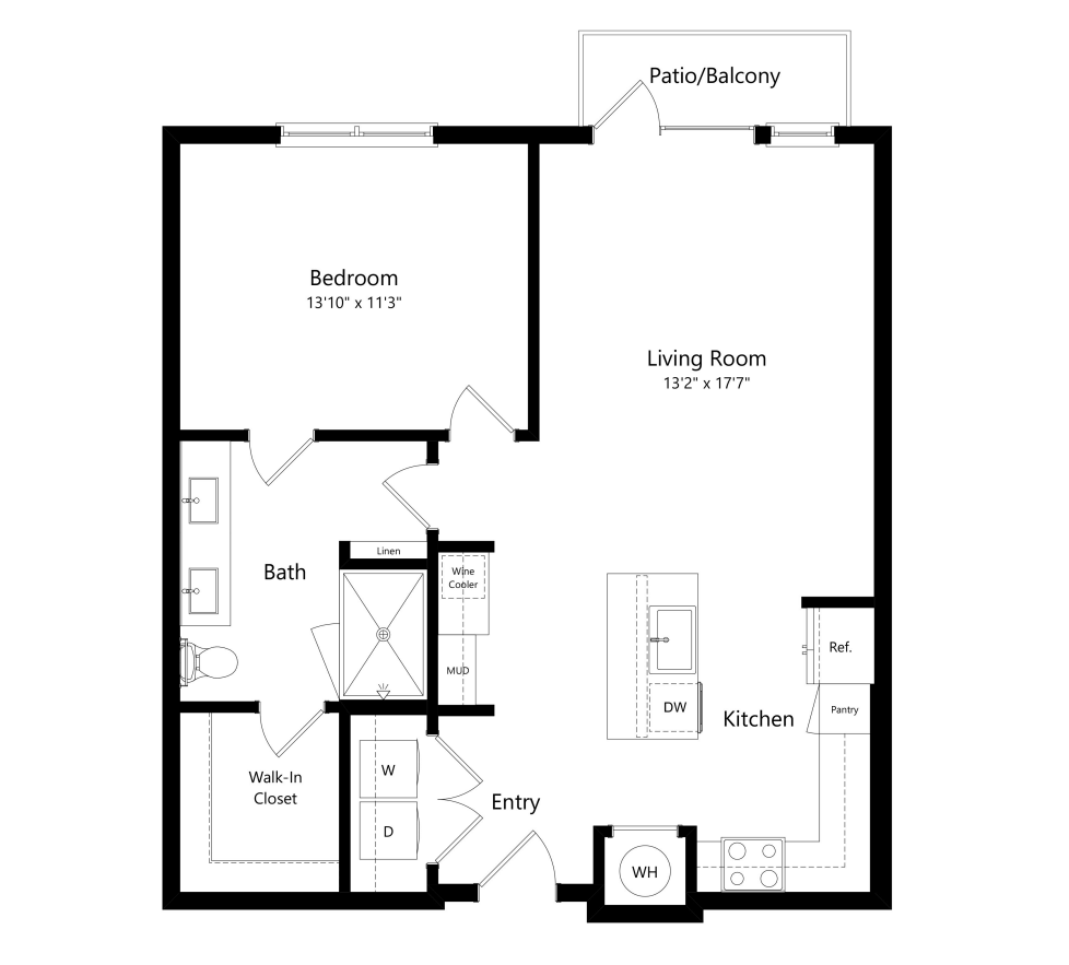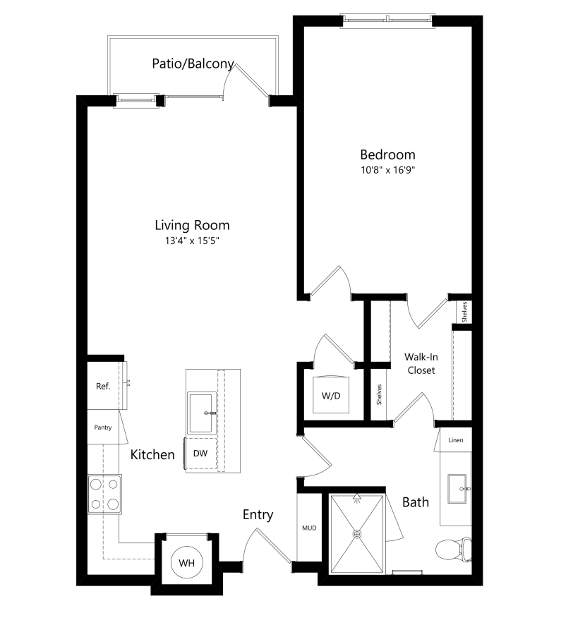 1 Dormitorio, 1 Baño, 750 pies²Disponible AhoraGalería del Modelo