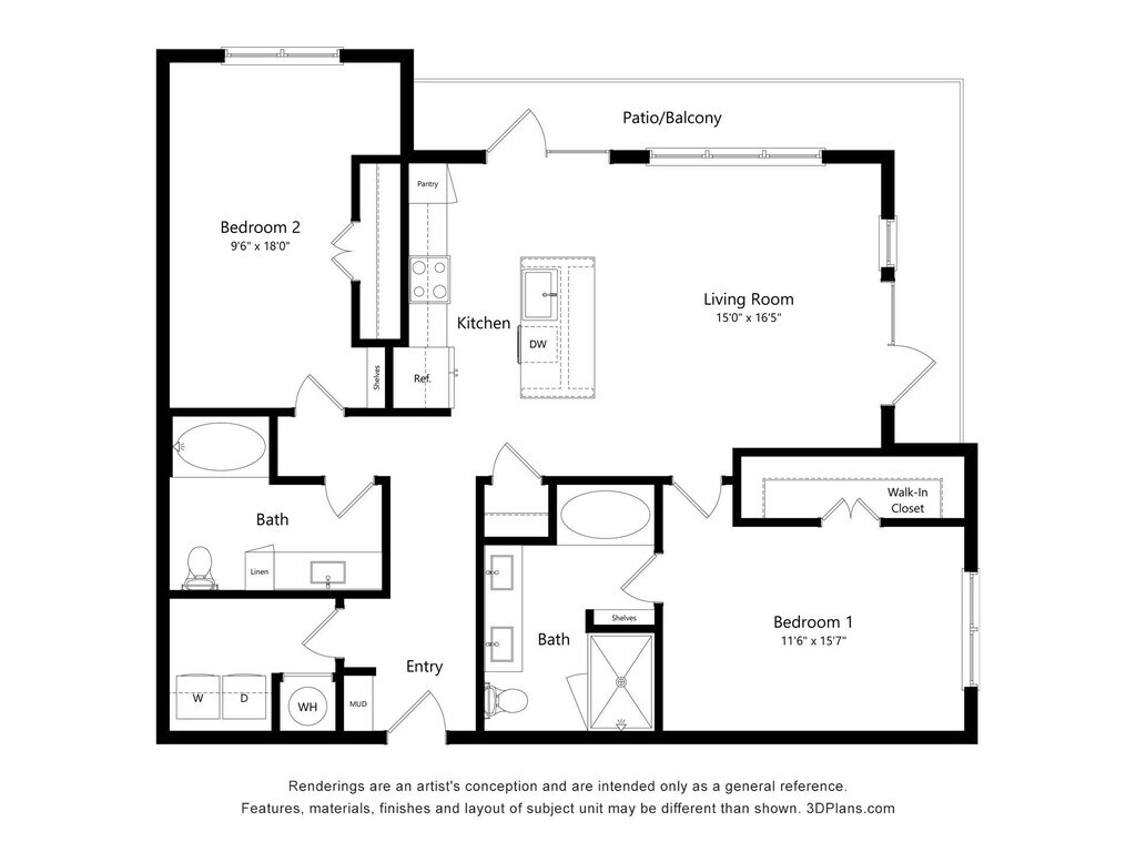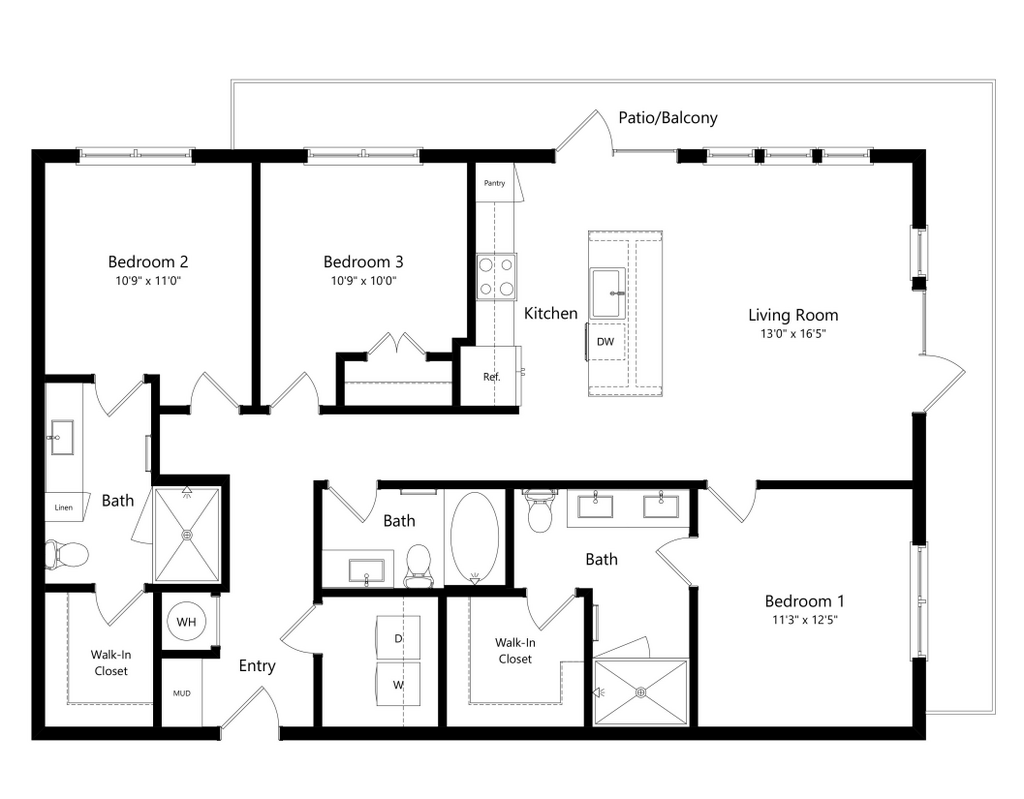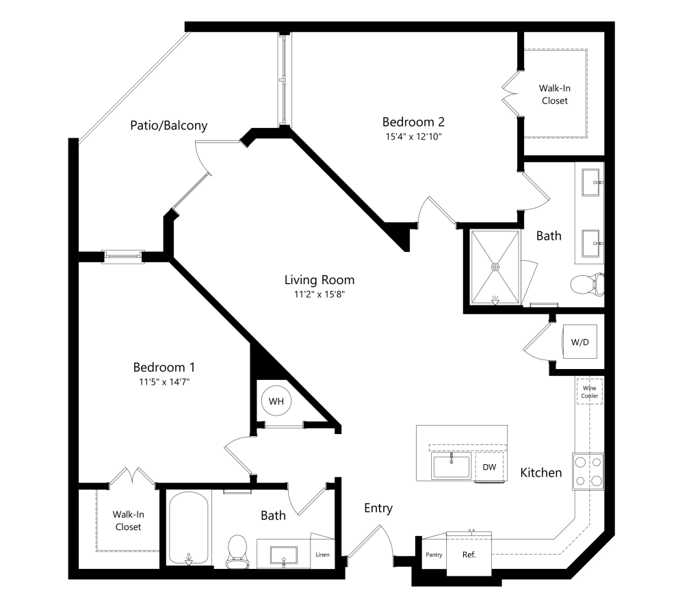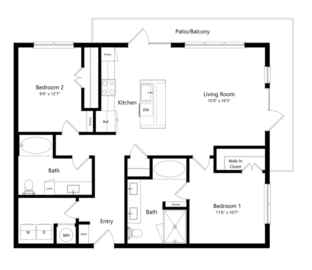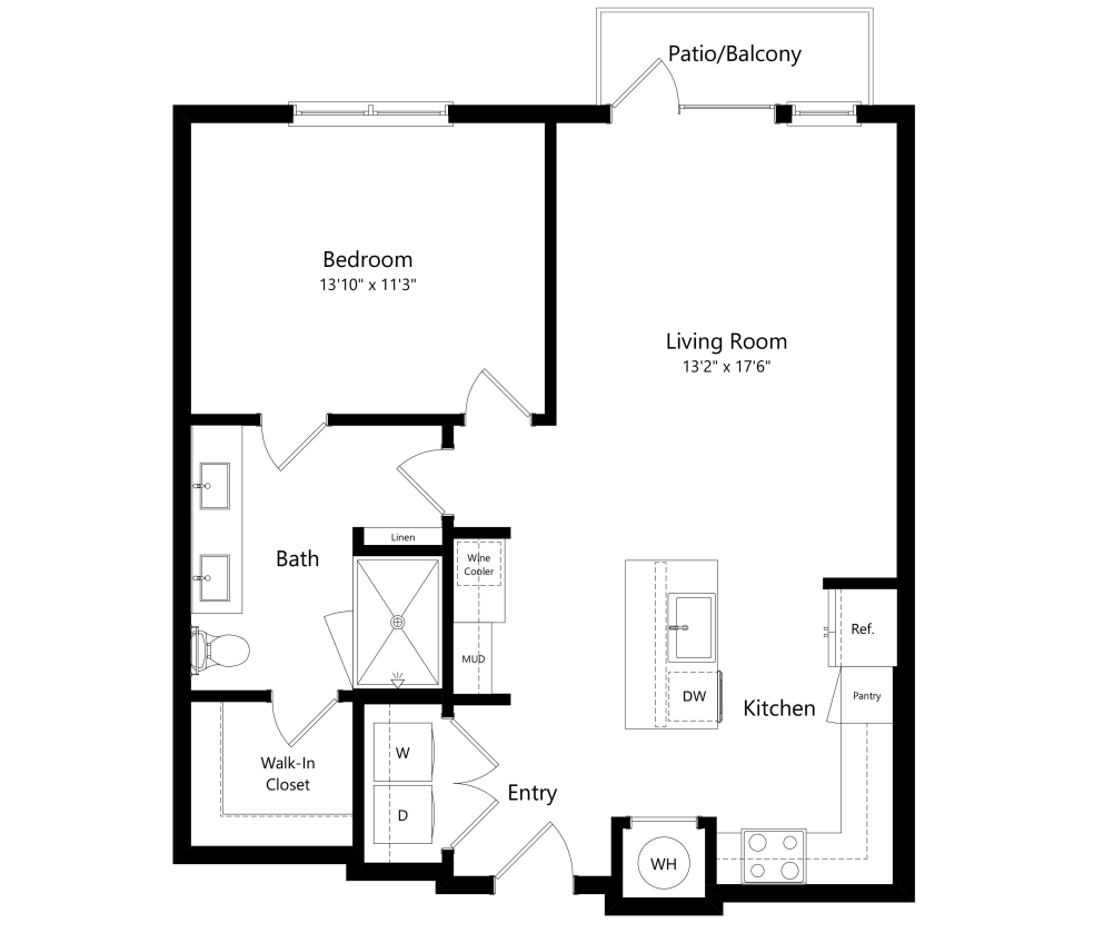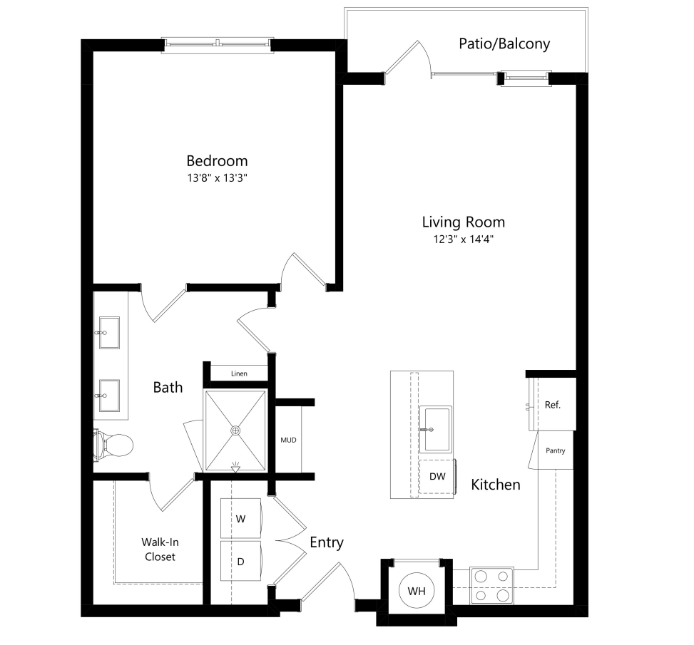 1 Dormitorio, 1 Baño, 802 pies²Disponible AhoraGalería del Modelo