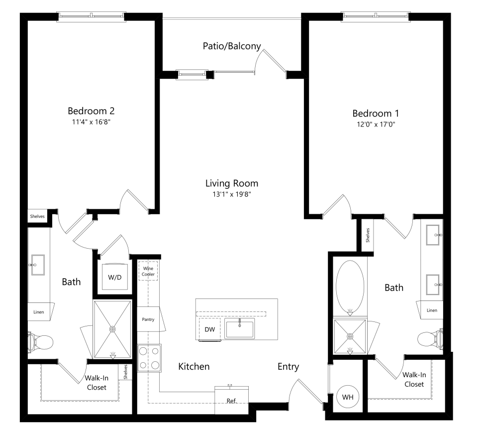 Modelo de apartamento: Ophelia1 Dormitorio, 1 Baño, 773 sq ftDisponible Ahora![]()