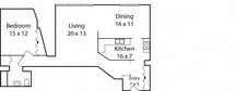 1 Dormitorio, 1 Baño, 900 pies²Disponible AhoraGalería del Modelo