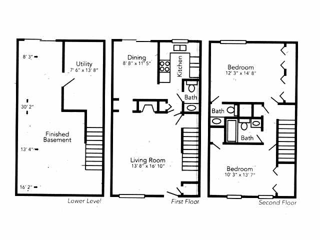 2 Dormitorios, 1.5 Baños, 1615 pies²Galería del Modelo