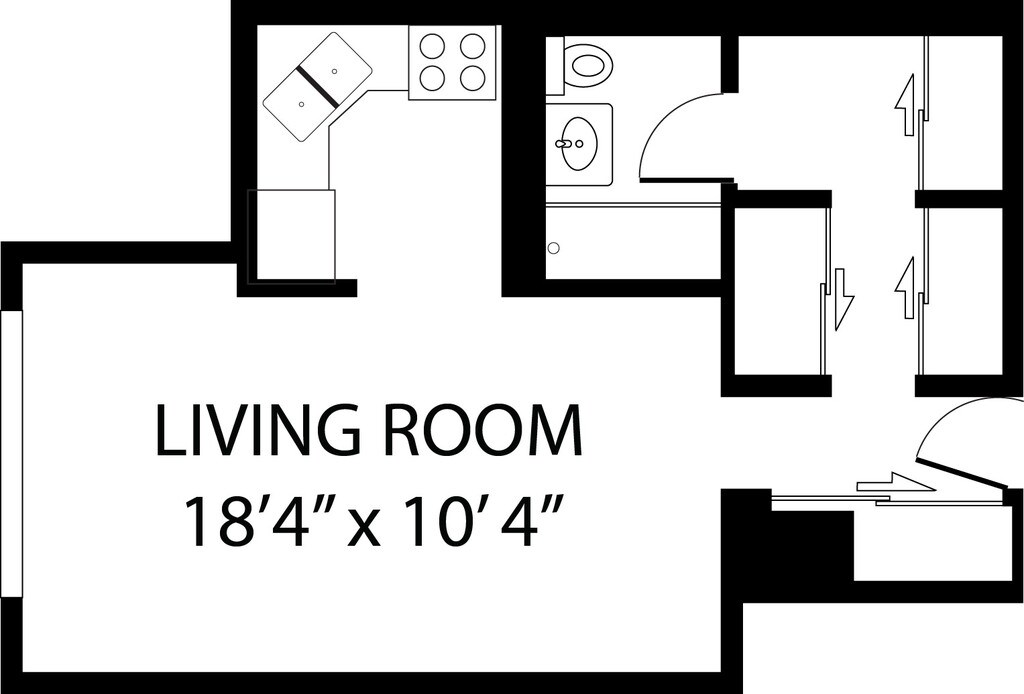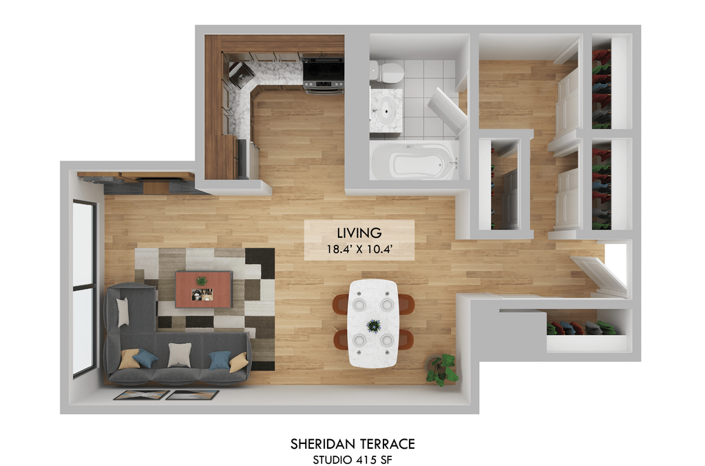 Estudio, 1 Baño, 415-425 pies²Disponible Apr 1Galería del Modelo