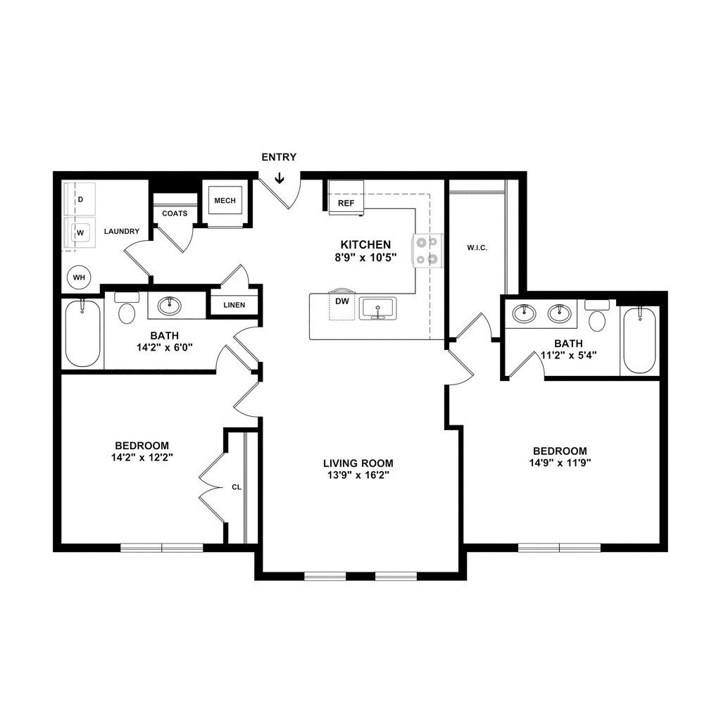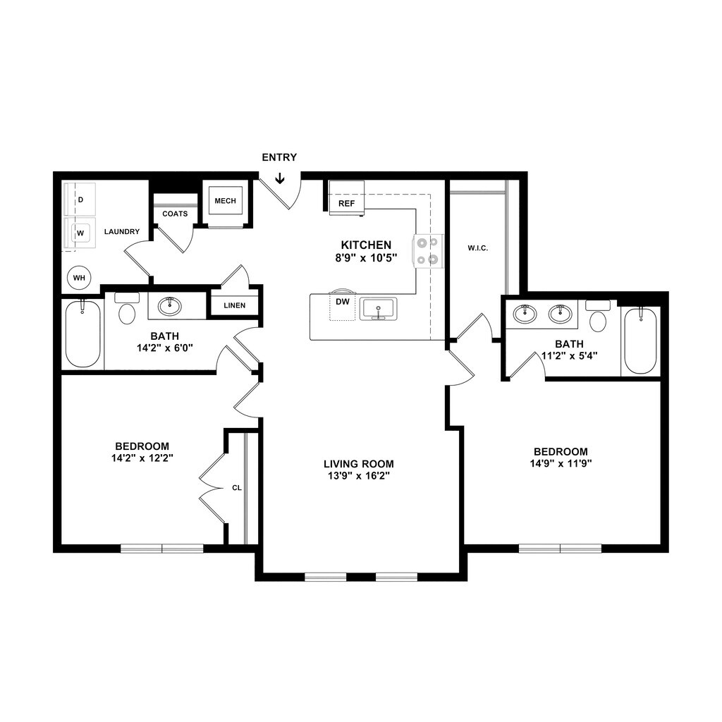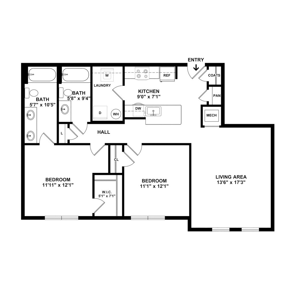 Modelo de apartamento: The Cherrydale: Sherwood CDesde $1,6332 Dormitorios, 2 Baños, 1003 sq ftDisponible Ahora![]()