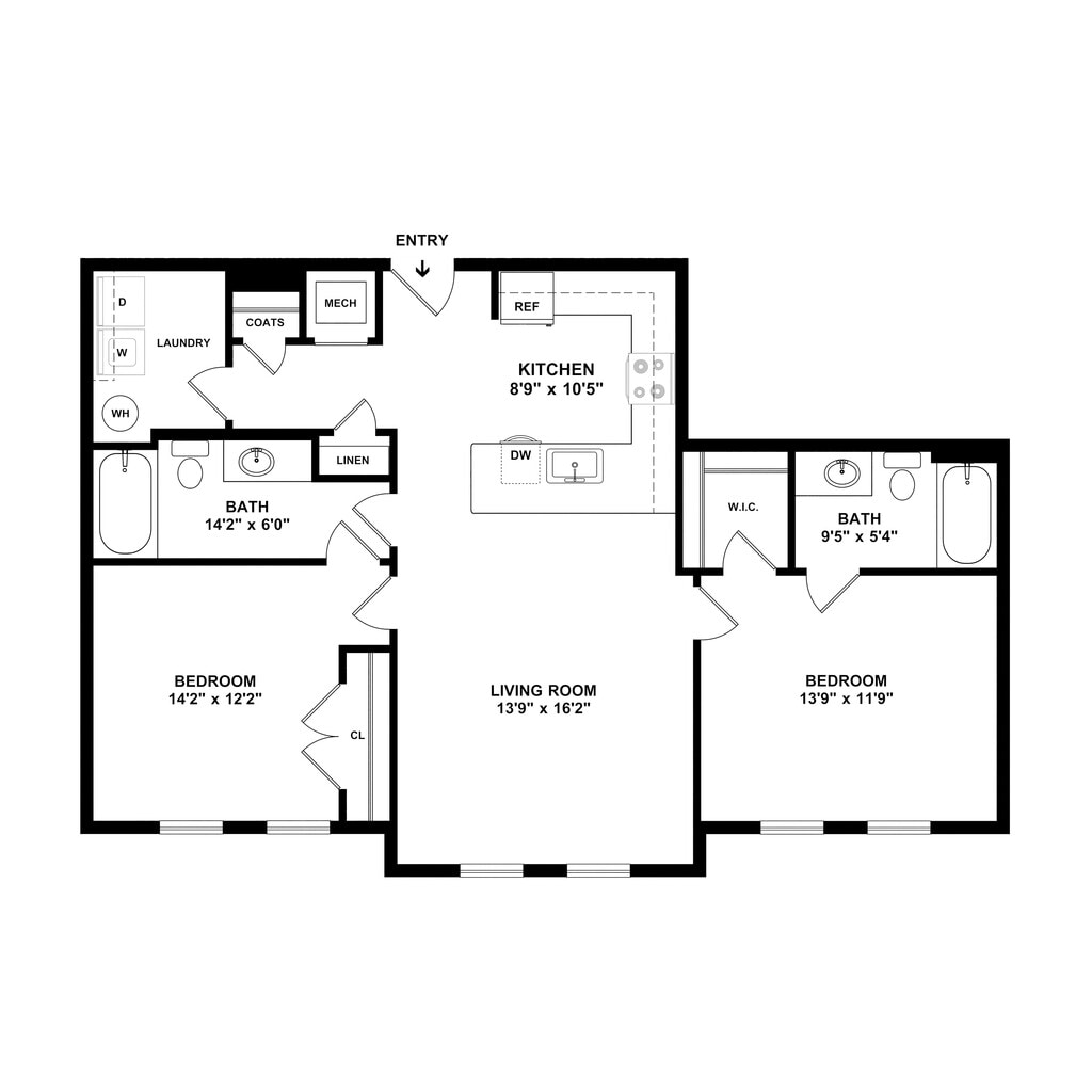Modelo de apartamento: The Atlee$1,7371 Dormitorio, 1 Baño, 732 sq ftNo Disponible![]()