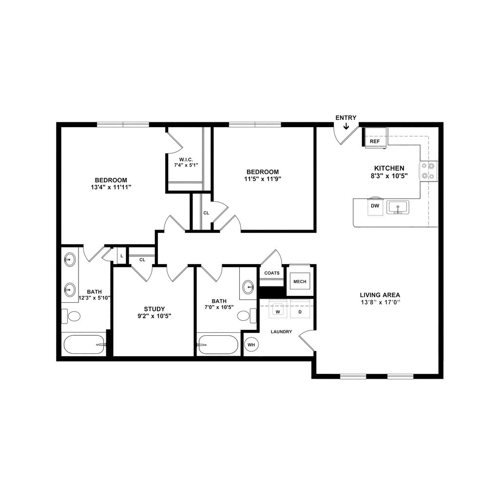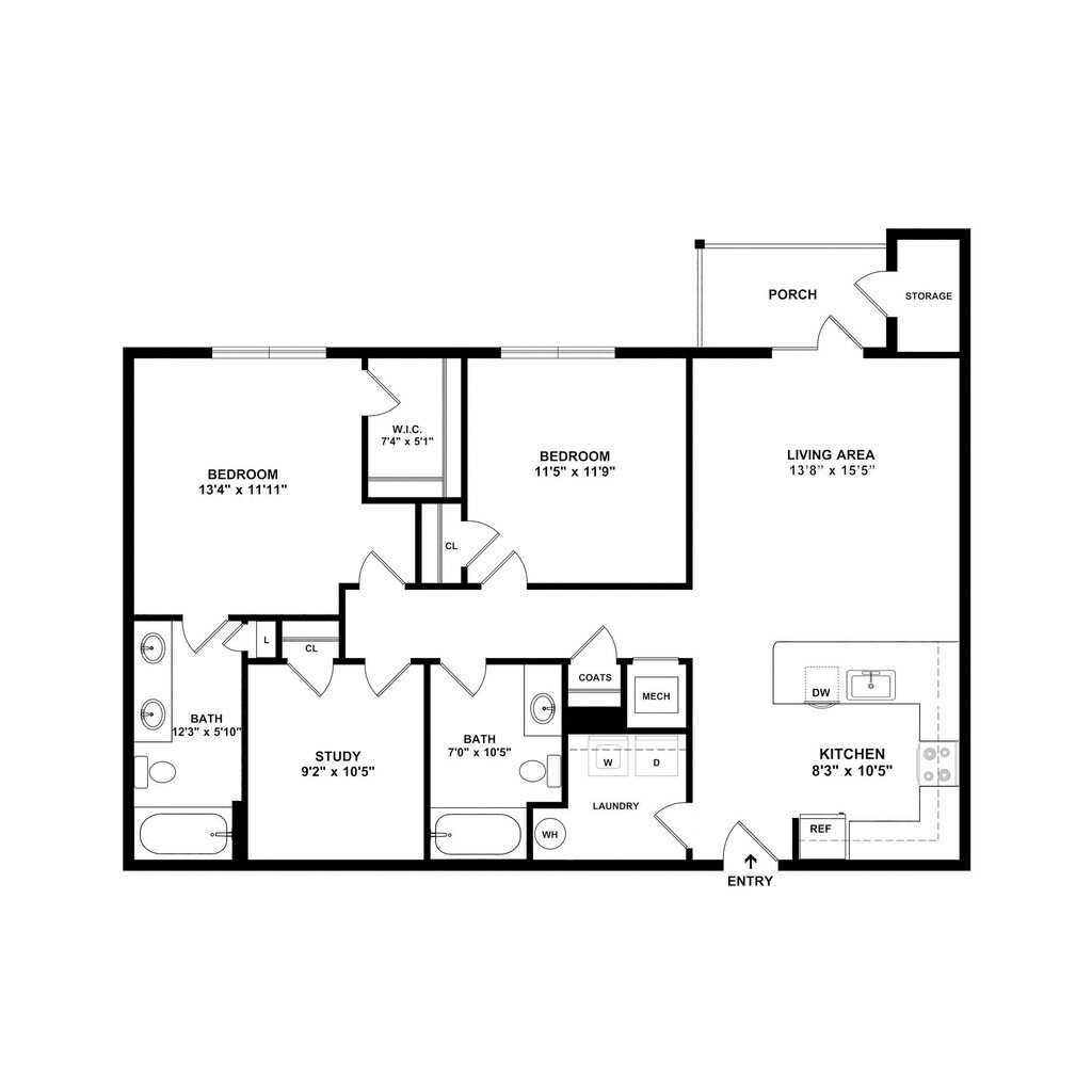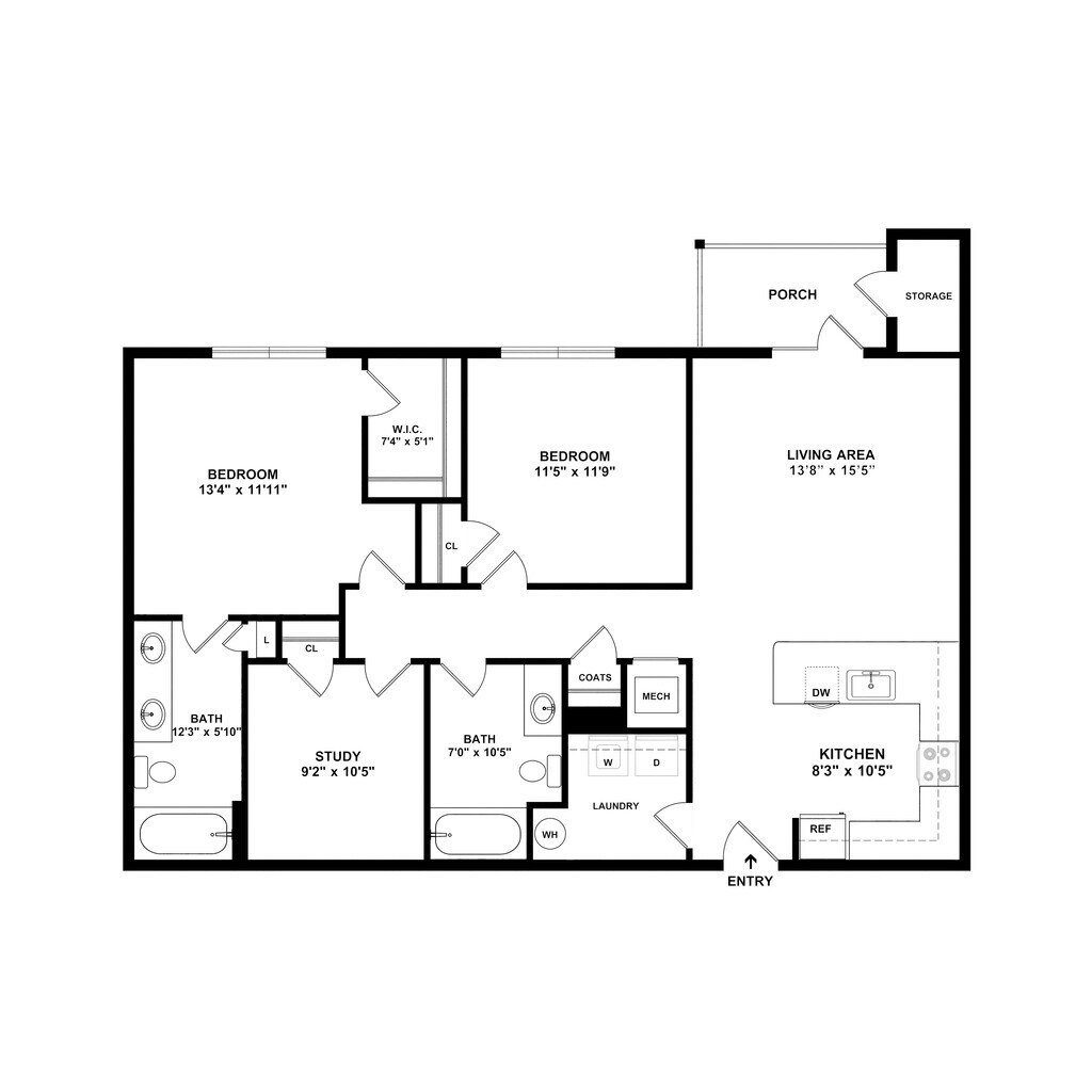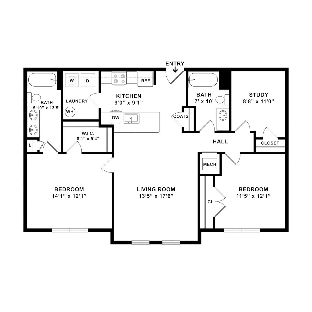 Modelo de apartamento: The Hanover: Sherwood CDesde $1,4331 Dormitorio, 1 Baño, 720 sq ftNo Disponible![]()