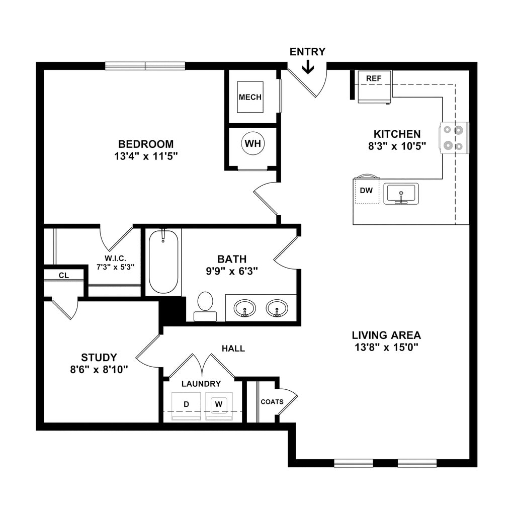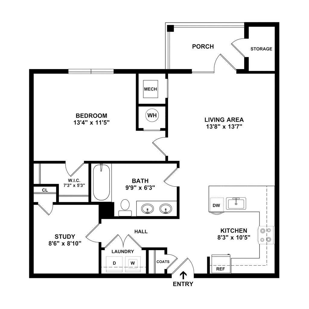 1 Dormitorio, 1 Baño, 806 pies²El más grandeEsta opción tiene las unidades más grandes para este modeloGalería del Modelo