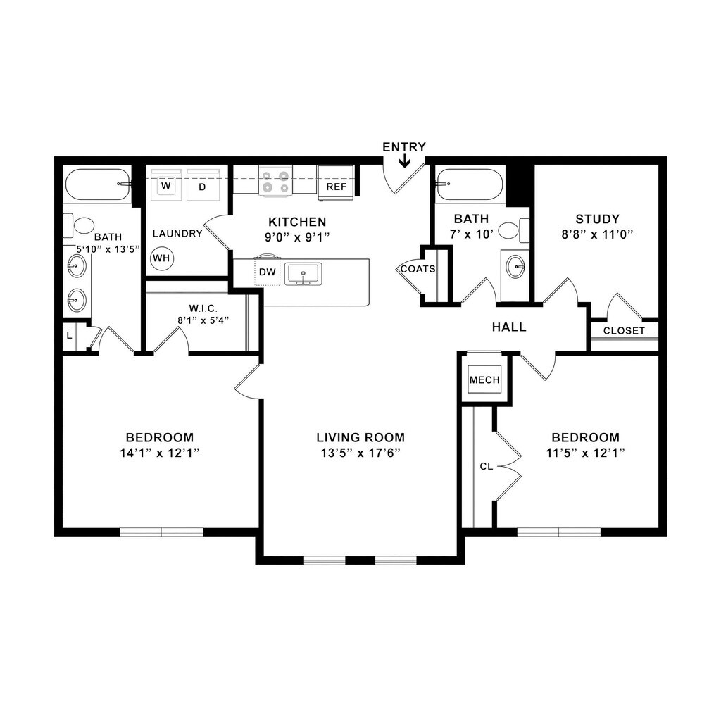 Modelo de apartamento: The Elmont$1,7871 Dormitorio, 1 Baño, 797 sq ftNo Disponible![]()