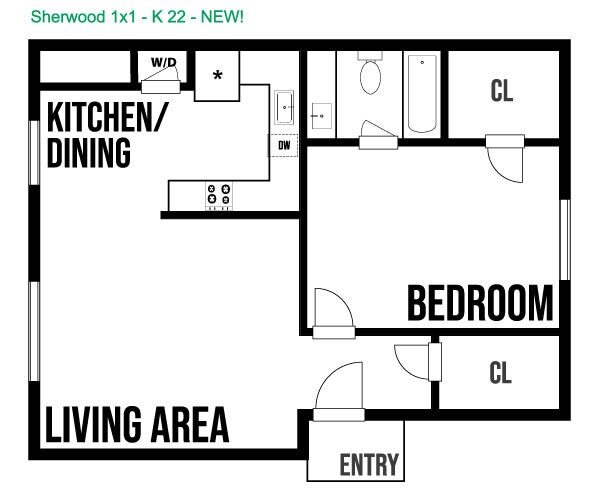 Modelo de apartamento: 1 Bed, 1.00 BathDesde $1,3951 Dormitorio, 1 Baño, 550 sq ftDisponible AhoraPlanosFotos![]()