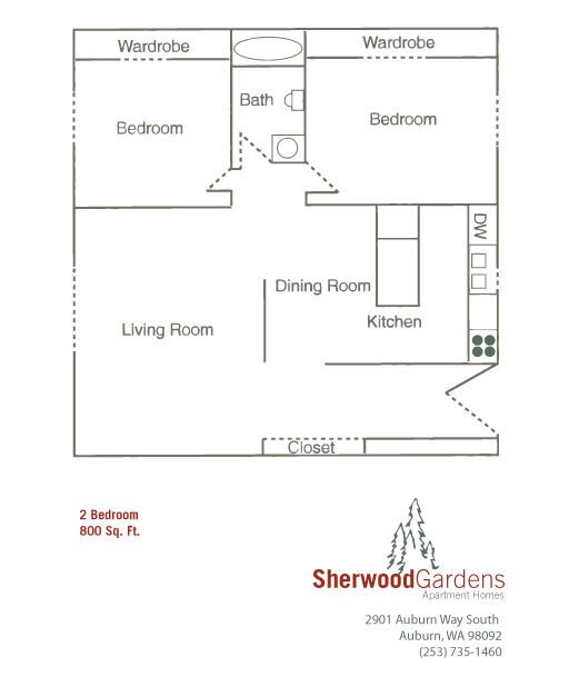 Sherwood Gardens ofrece un hermoso complejo de apartamentos en un frondoso parque, una vida cómoda a precios asequibles. El complejo incluye un área de juegos infantiles, piscinas, estaciones para mascotas y áreas de pícnic. Los residentes pueden elegir entre apartamentos de una y dos habitaciones, que tienen comodidades como cocina completamente eléctrica, ventiladores de techo, vestidores, gabinetes de cocina, y ¡más! Sherwood Gardens está ubicado convenientemente frente al casino The Muckleshoot y cerca de The Outlet Collection Mall. También estamos cerca de lugares de entretenimiento, como el anfiteatro White River, varios restaurantes, Boeing y Green River Community College. La ubicación también te provee un fácil acceso a las autopistas y líneas de autobús.