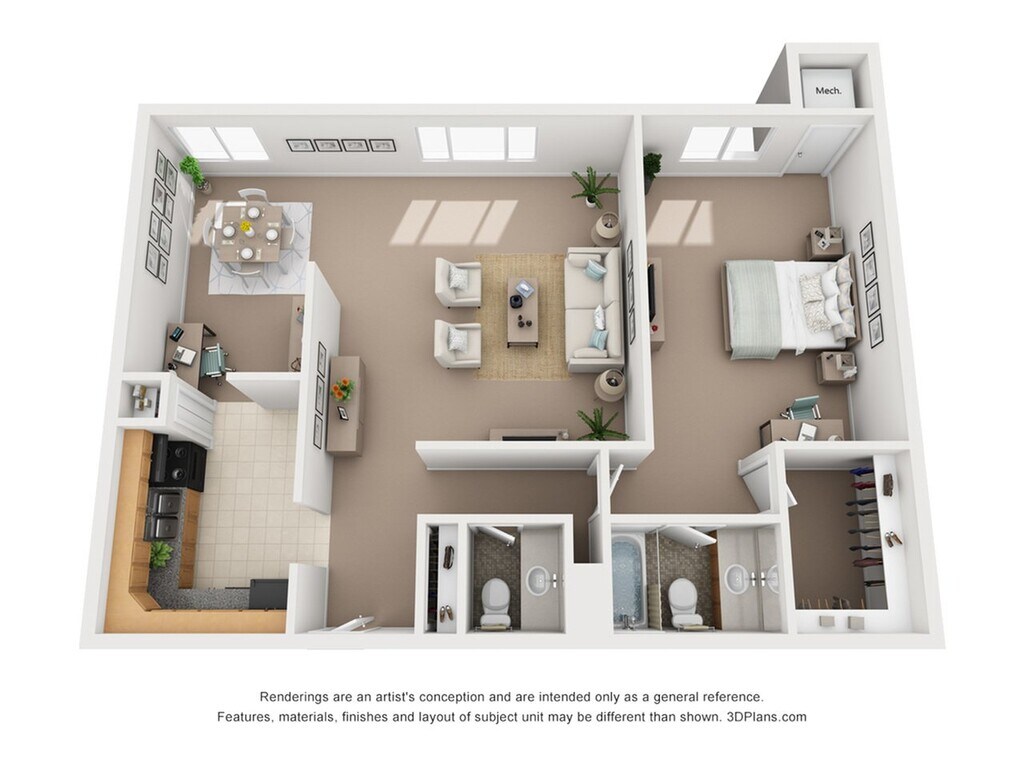 1 Dormitorio, 1 Baño, 755 pies²Galería del Modelo