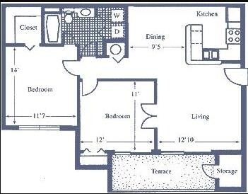 Modelo de apartamento: A2 OAKDesde $1,7291 Dormitorio, 1 Baño, 844 sq ftDisponible Ahora![]()