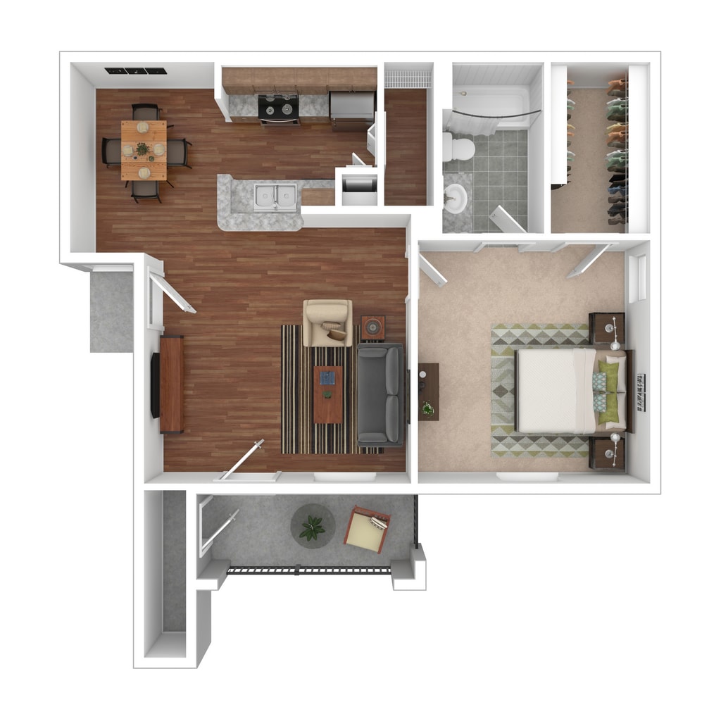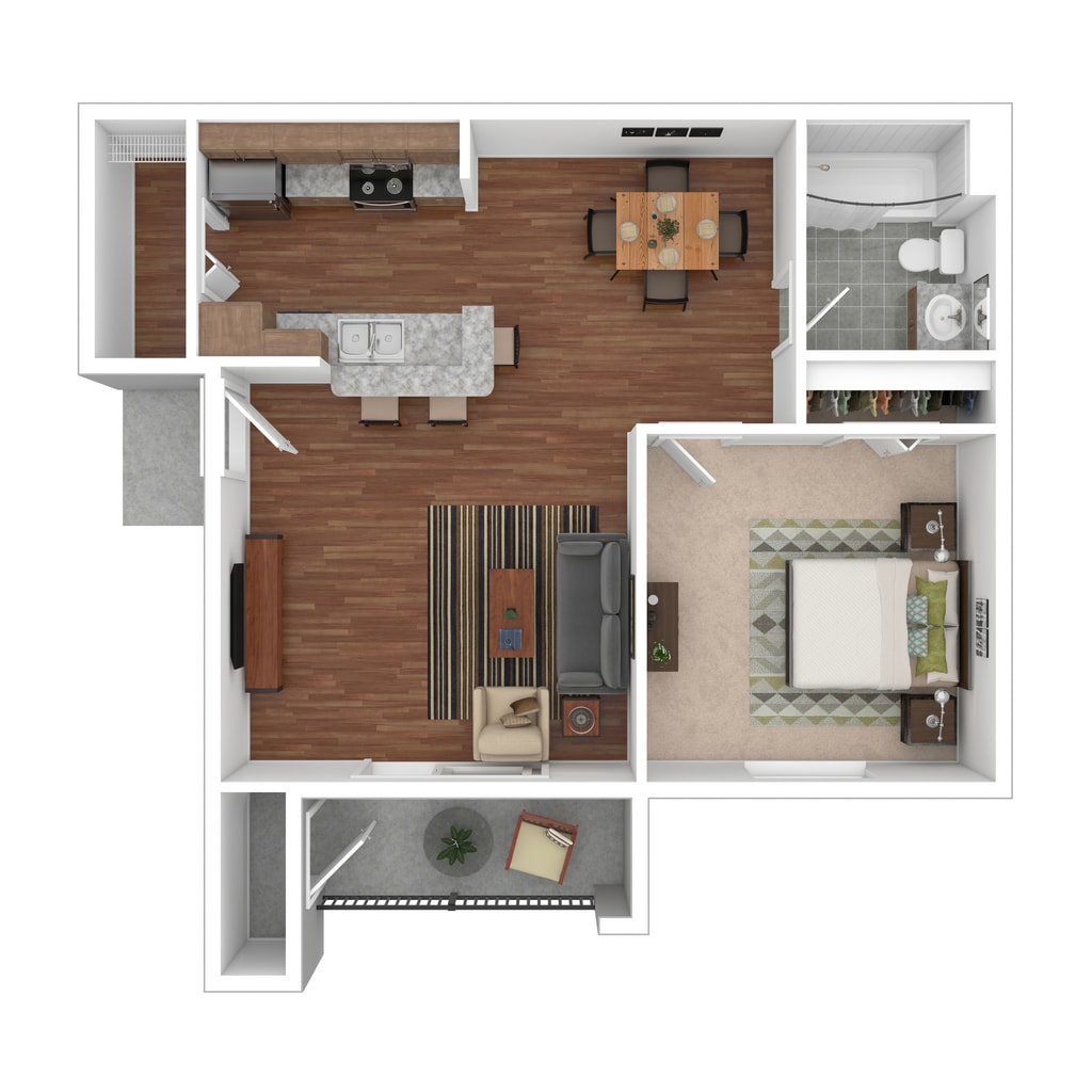 1 Dormitorio, 1 Baño, 737 pies²Disponible AhoraGalería del Modelo