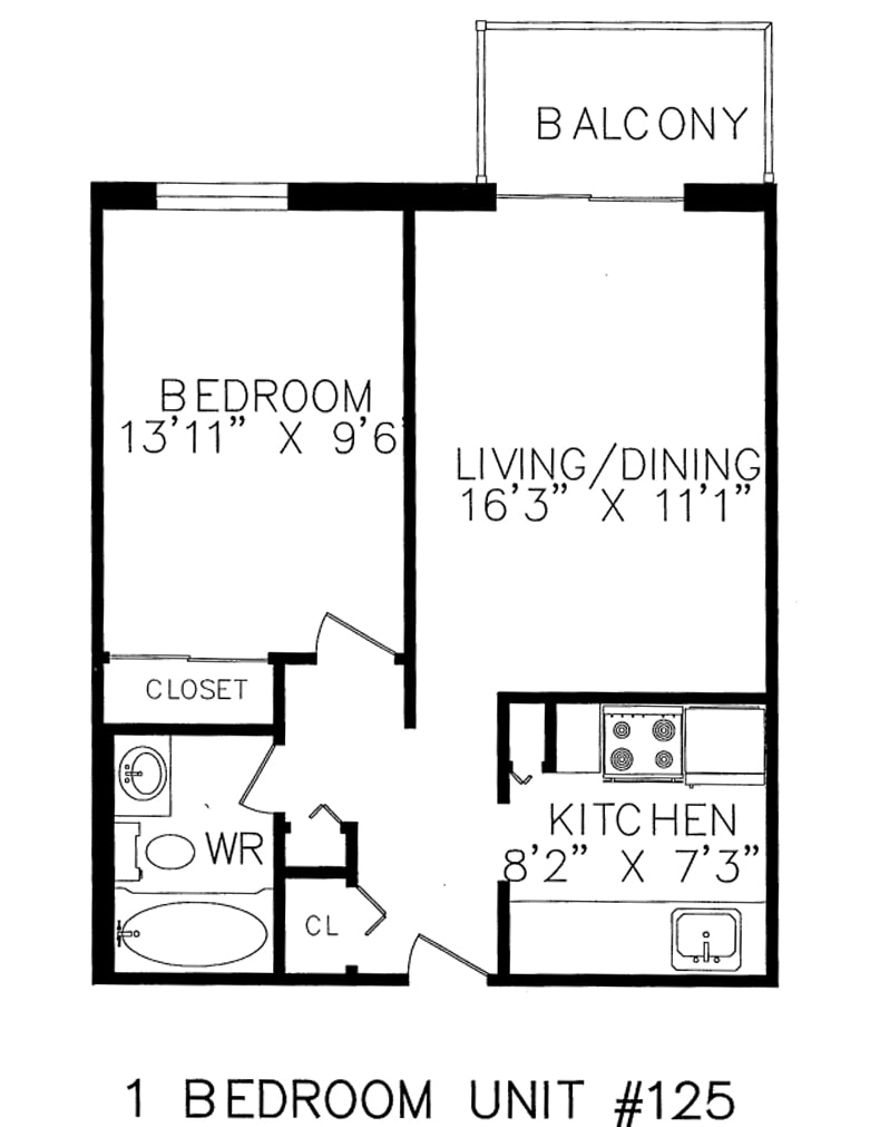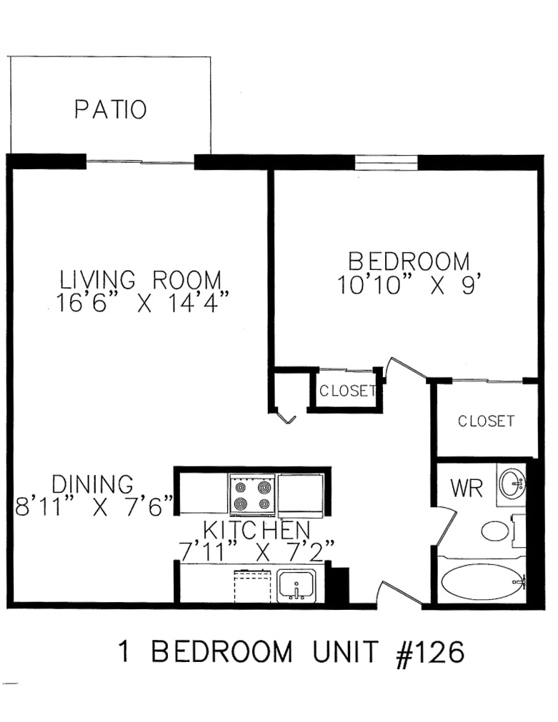 1 Dormitorio, 1 Baño, 500 pies²Disponible AhoraGalería del Modelo