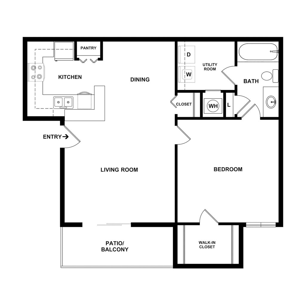 1 Dormitorio, 1 Baño, 600 pies²Disponible AhoraGalería del Modelo