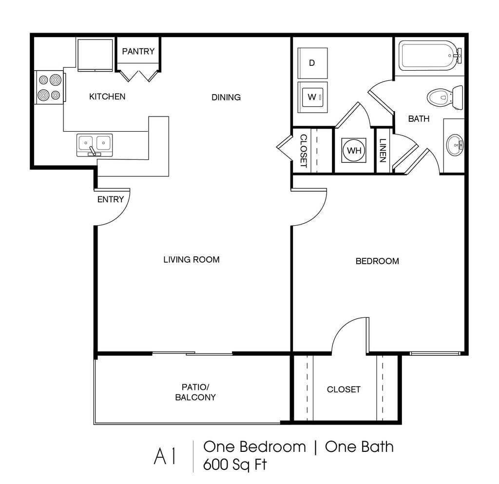 Modelo de apartamento: A1Desde $1,0601 Dormitorio, 1 Baño, 600 sq ftDisponible Ahora![]()