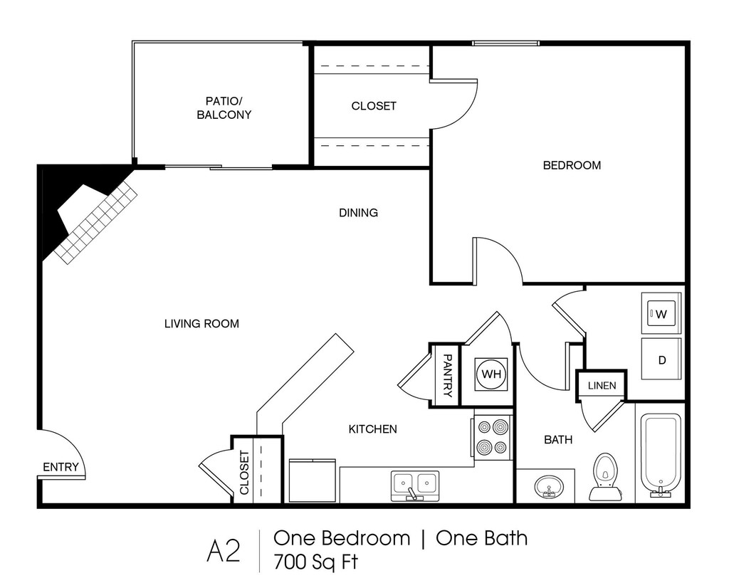 Modelo de apartamento: A2Desde $1,0151 Dormitorio, 1 Baño, 700 sq ftDisponible Ahora![]()