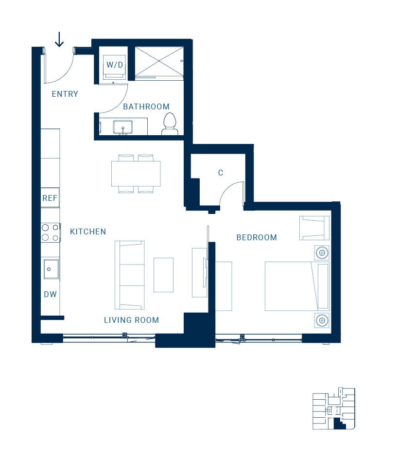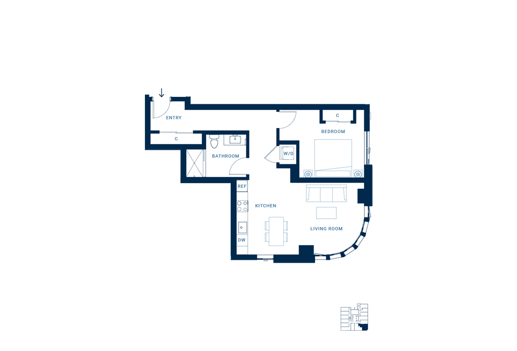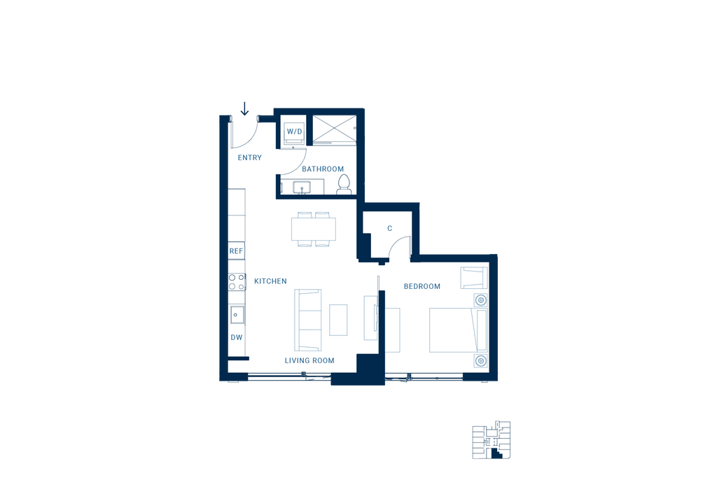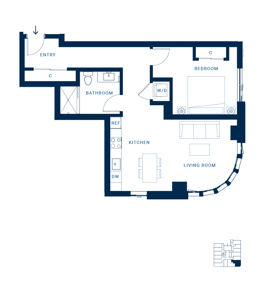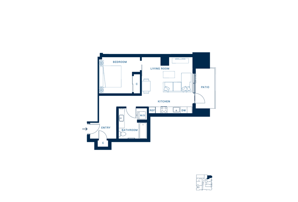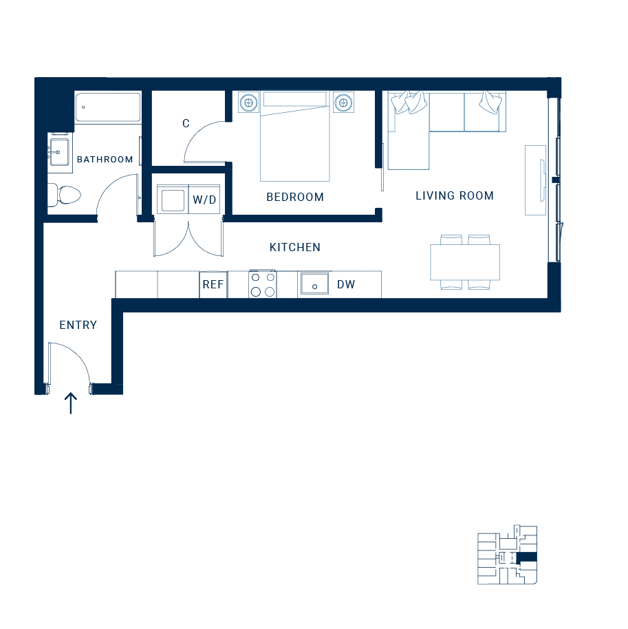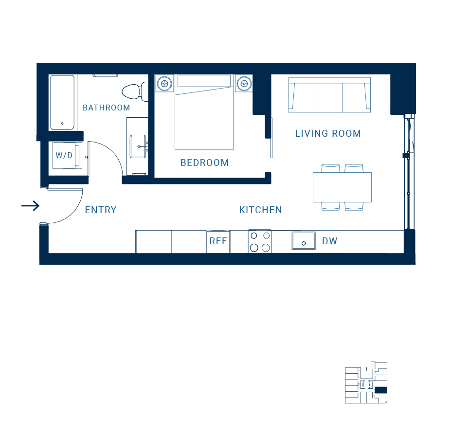 Studio H - Plano 1 Unidad de apartamento: 813Modelo de apartamento: Studio H$1,995Estudio, 1 Baño, 403 sq ftDisponible AhoraUrban J