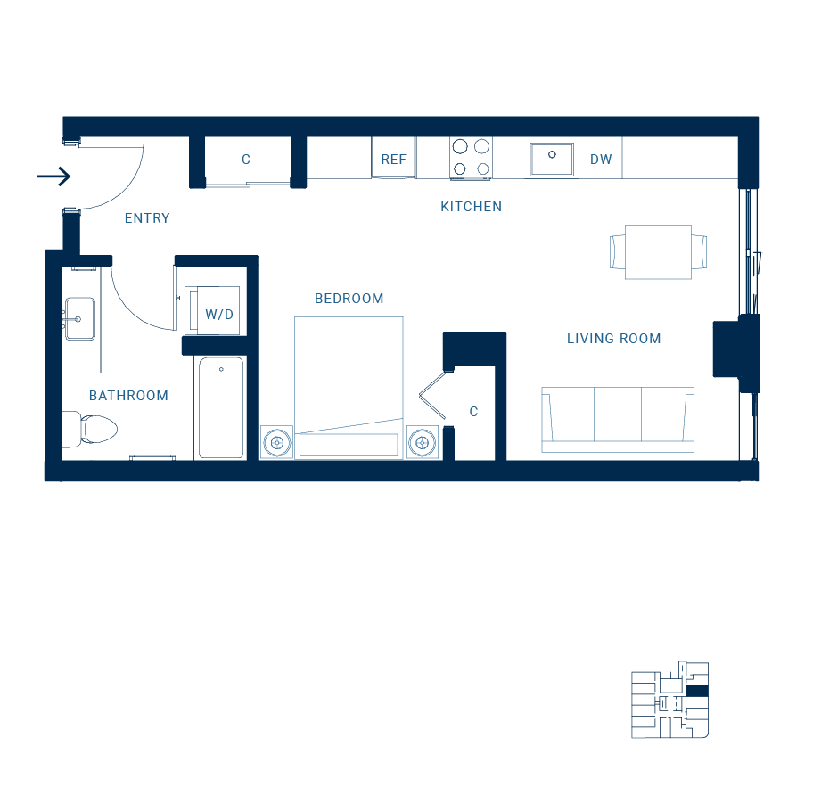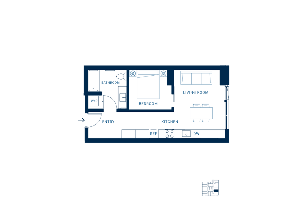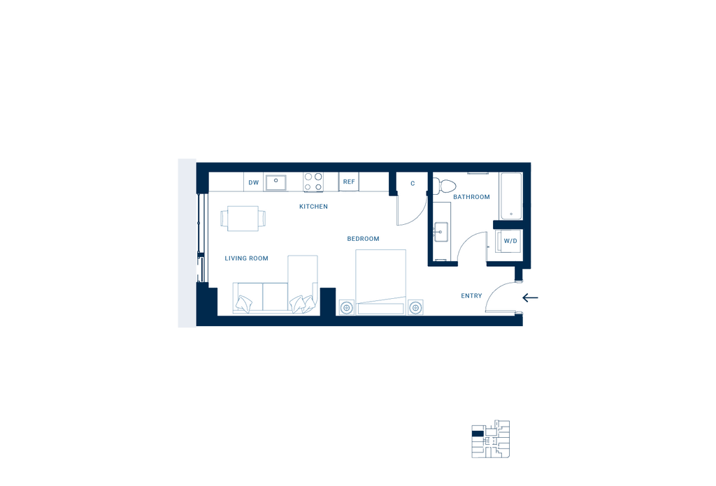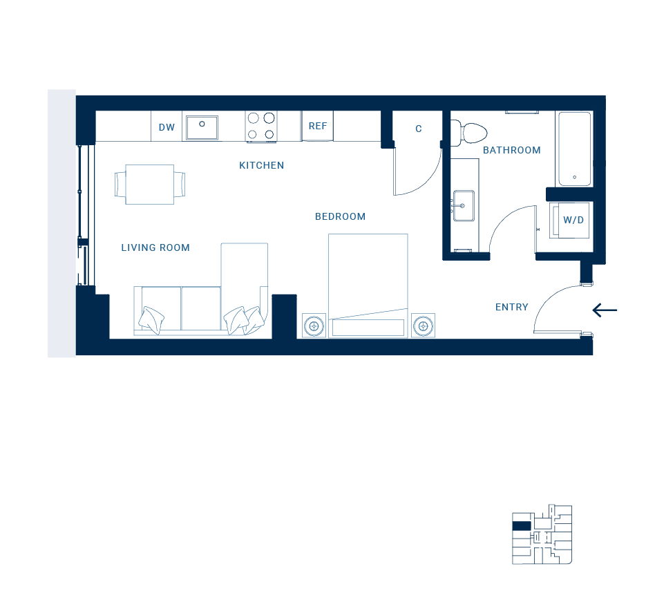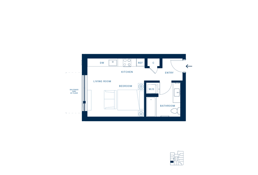 Modelo de apartamento: Studio H$1,995Estudio, 1 Baño, 403 sq ftDisponible Ahora![]()