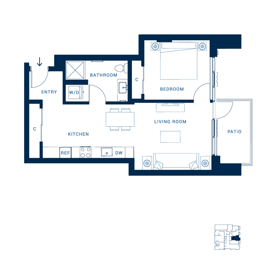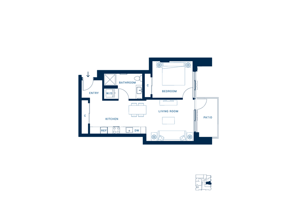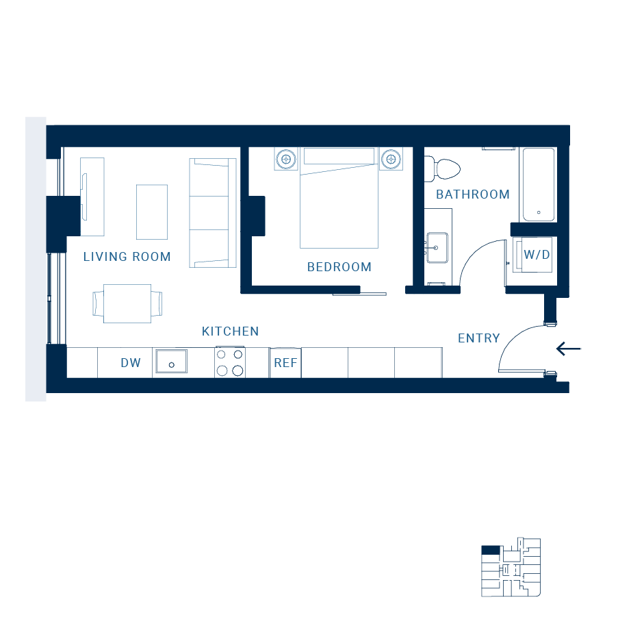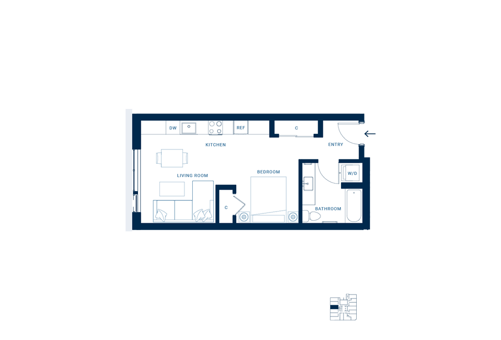 Modelo de apartamento: Studio H$1,995Estudio, 1 Baño, 403 sq ftDisponible Ahora![]()