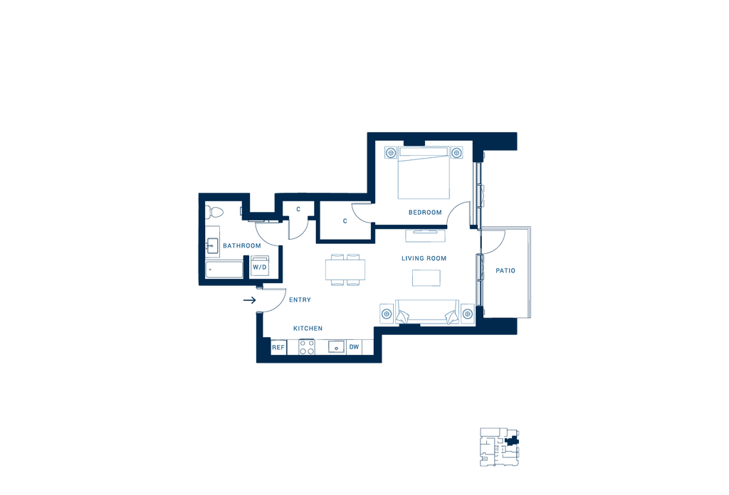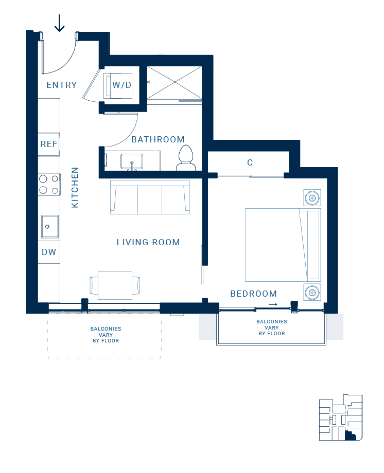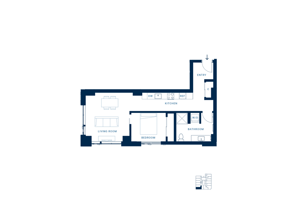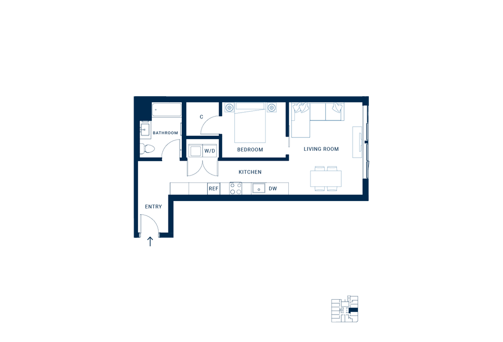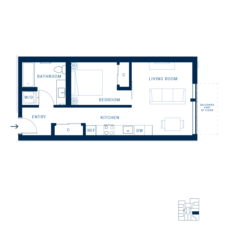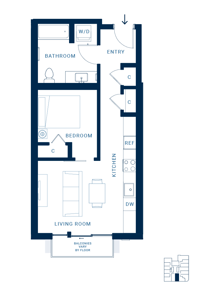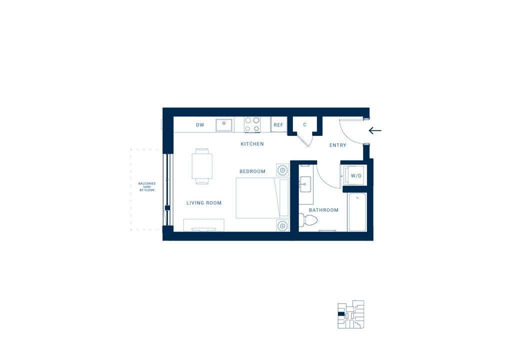 Urban J - Plano 1 Unidad de apartamento: 509Modelo de apartamento: Urban J$2,350Estudio, 1 Baño, 555 sq ftDisponible AhoraStudio A