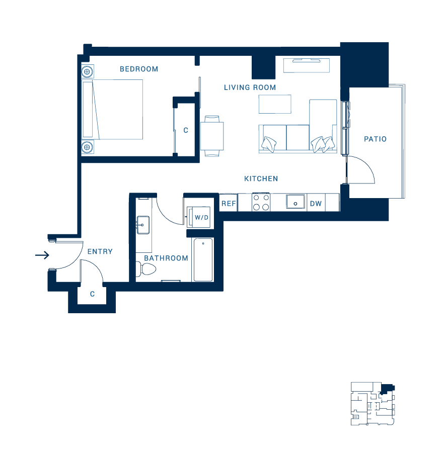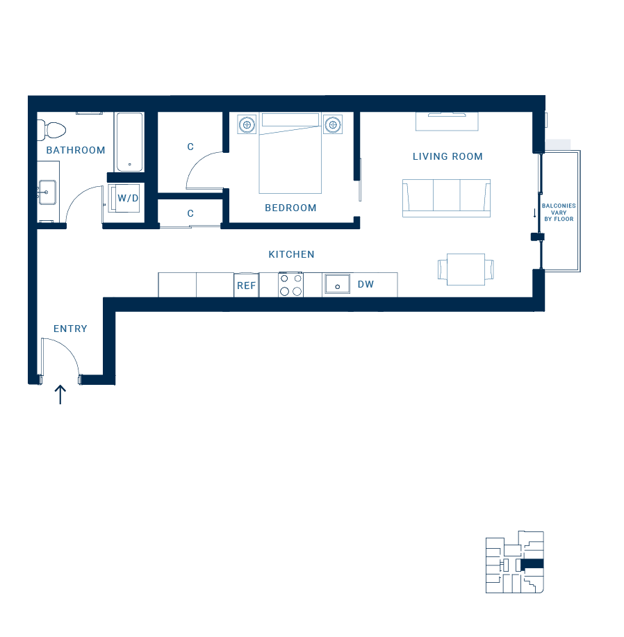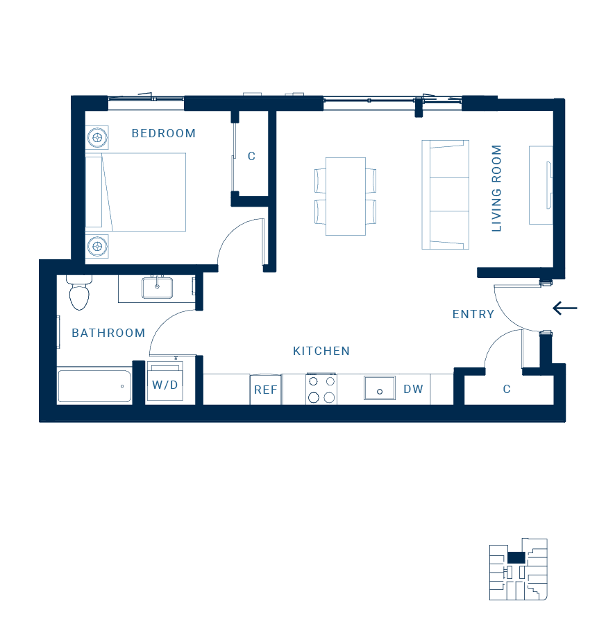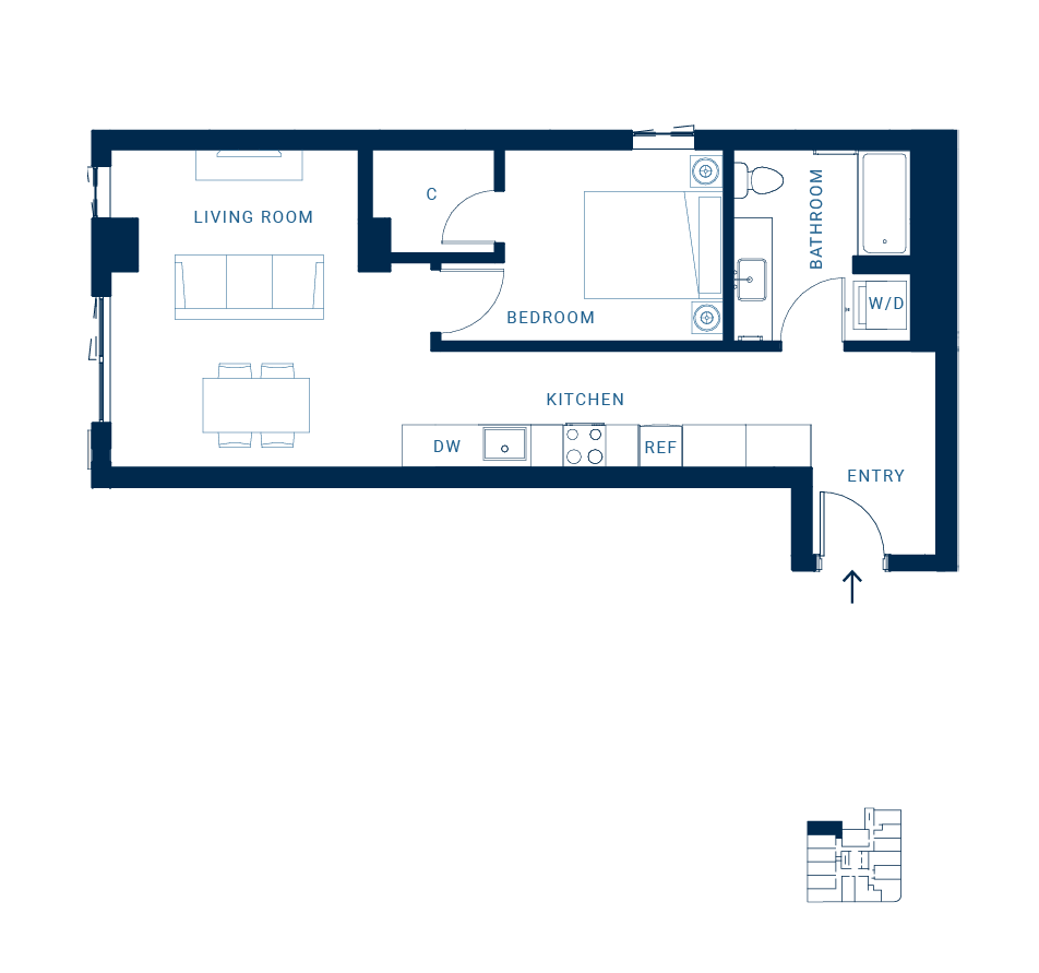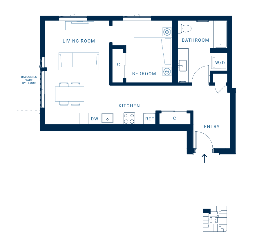Modelo de apartamento: Urban J$2,350Estudio, 1 Baño, 600 sq ftDisponible Ahora![]()