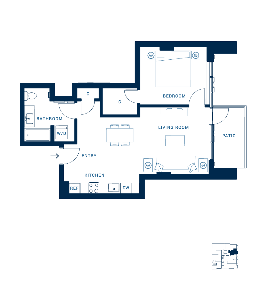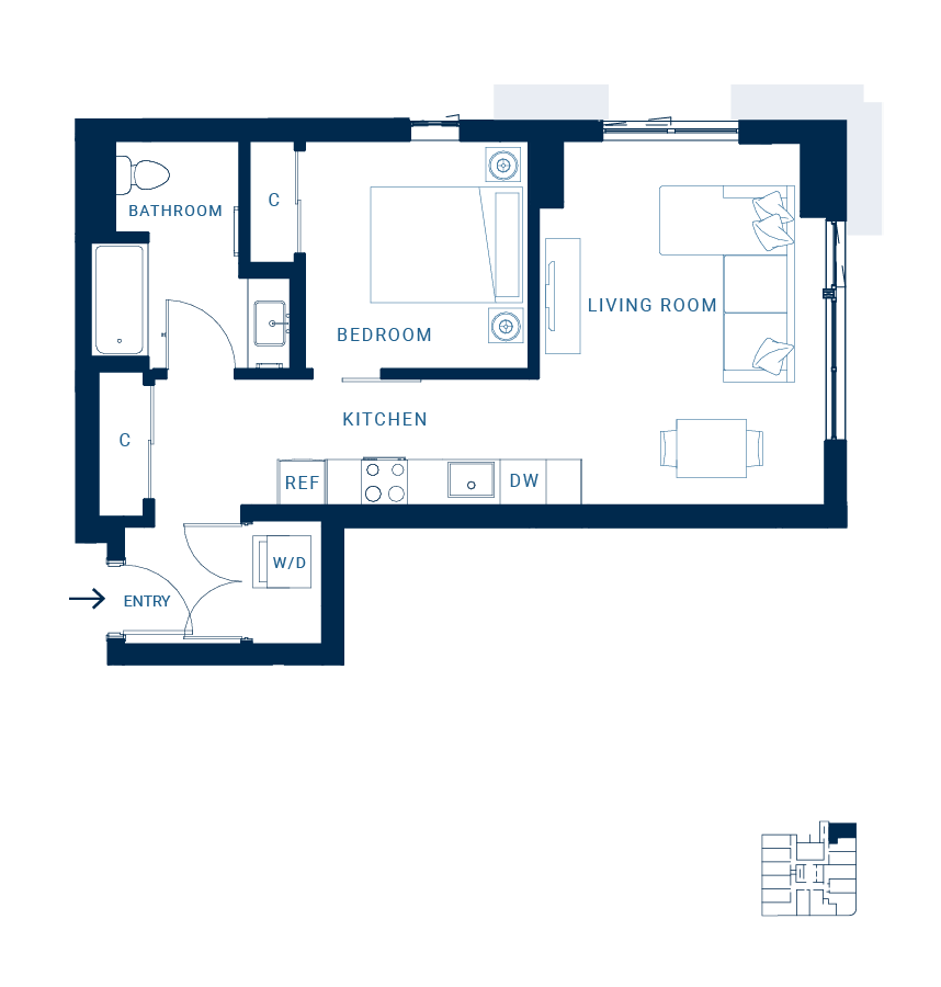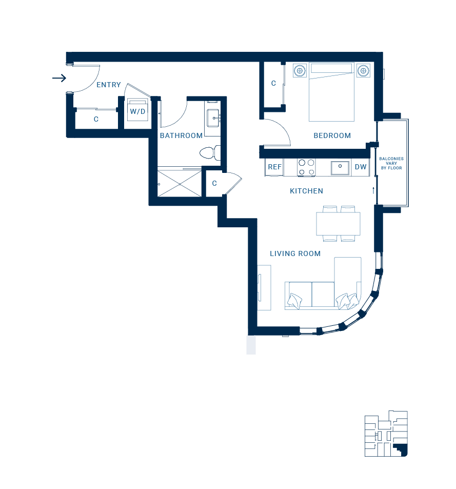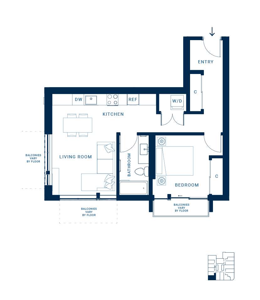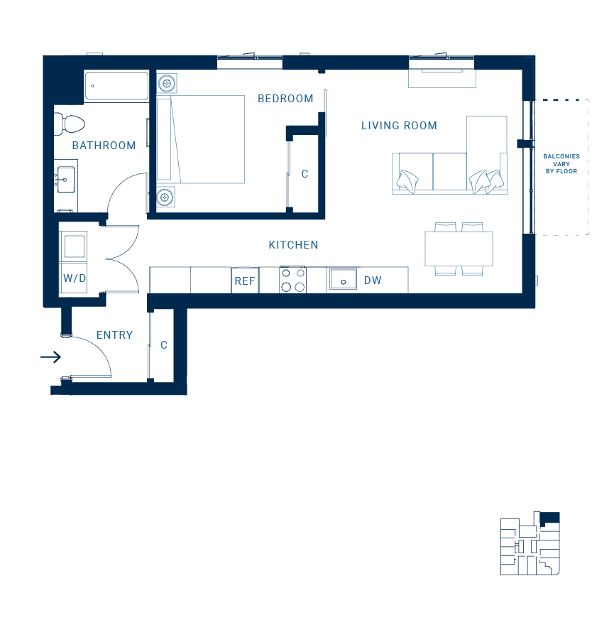 Modelo de apartamento: Urban J$2,350Estudio, 1 Baño, 600 sq ftDisponible Ahora![]()
