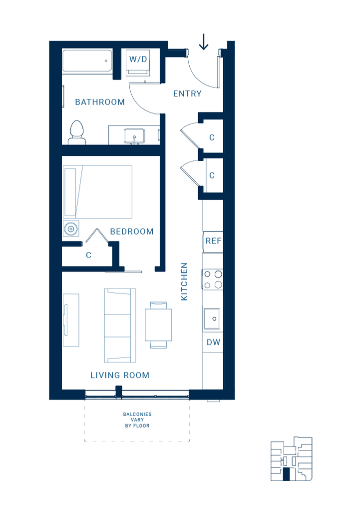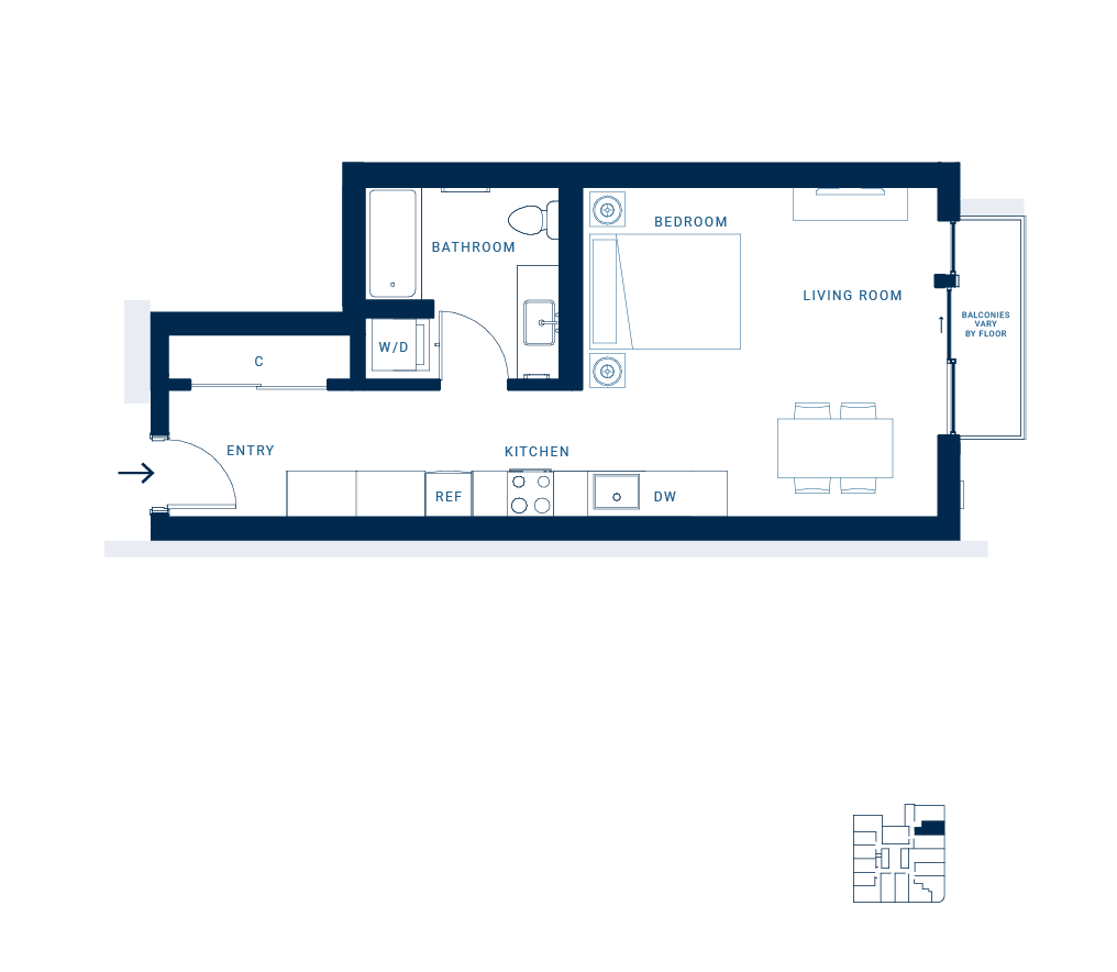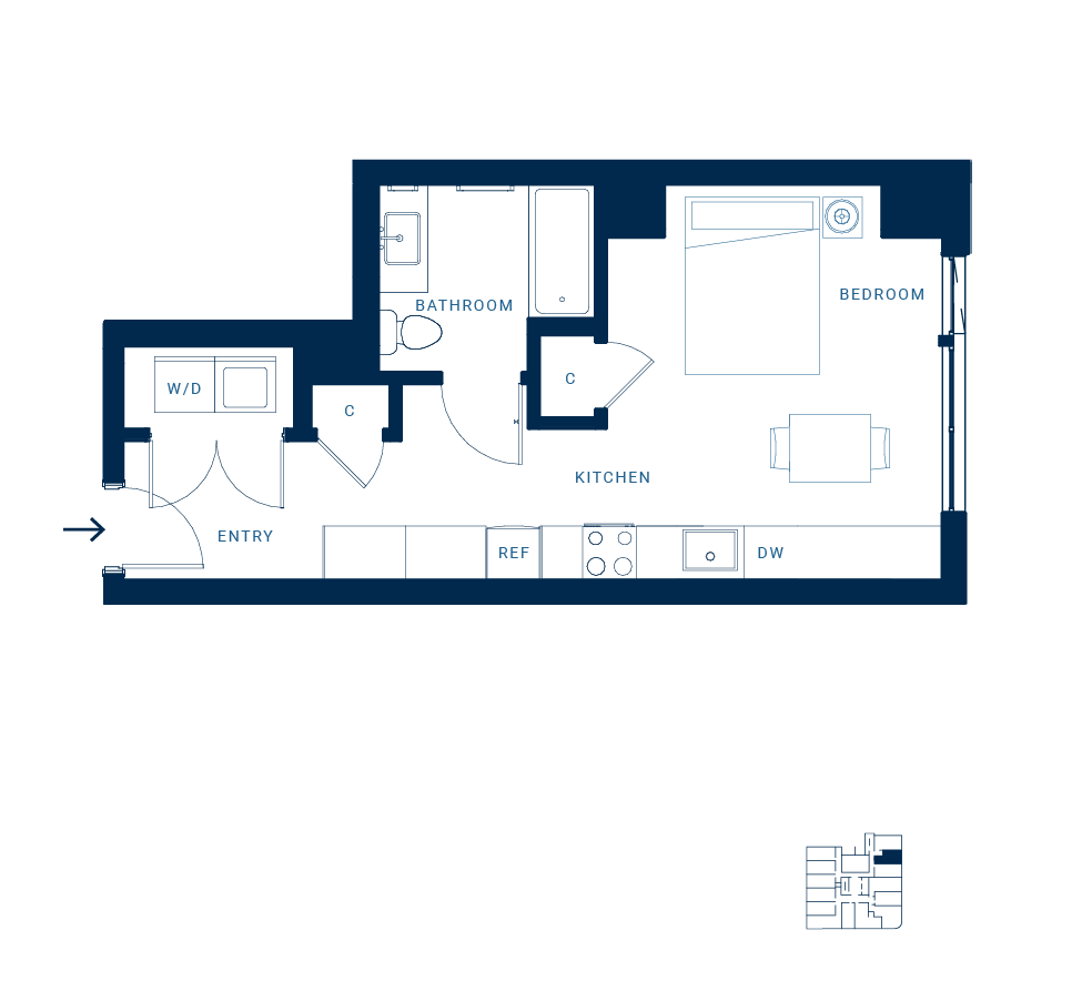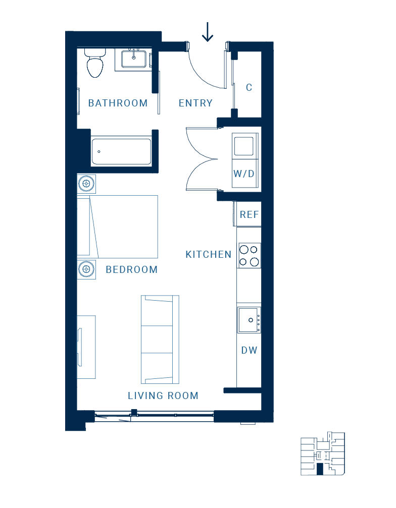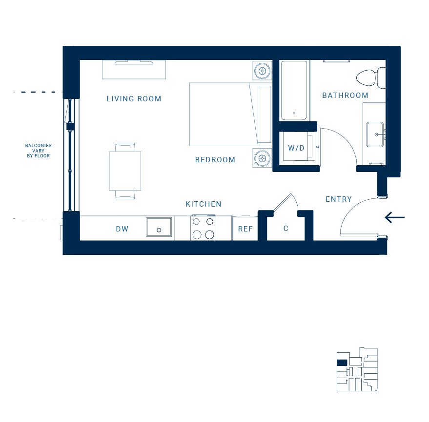 Modelo de apartamento: Studio BLlame para PreciosEstudio, 1 Baño, 384 sq ftNo Disponible![]()
