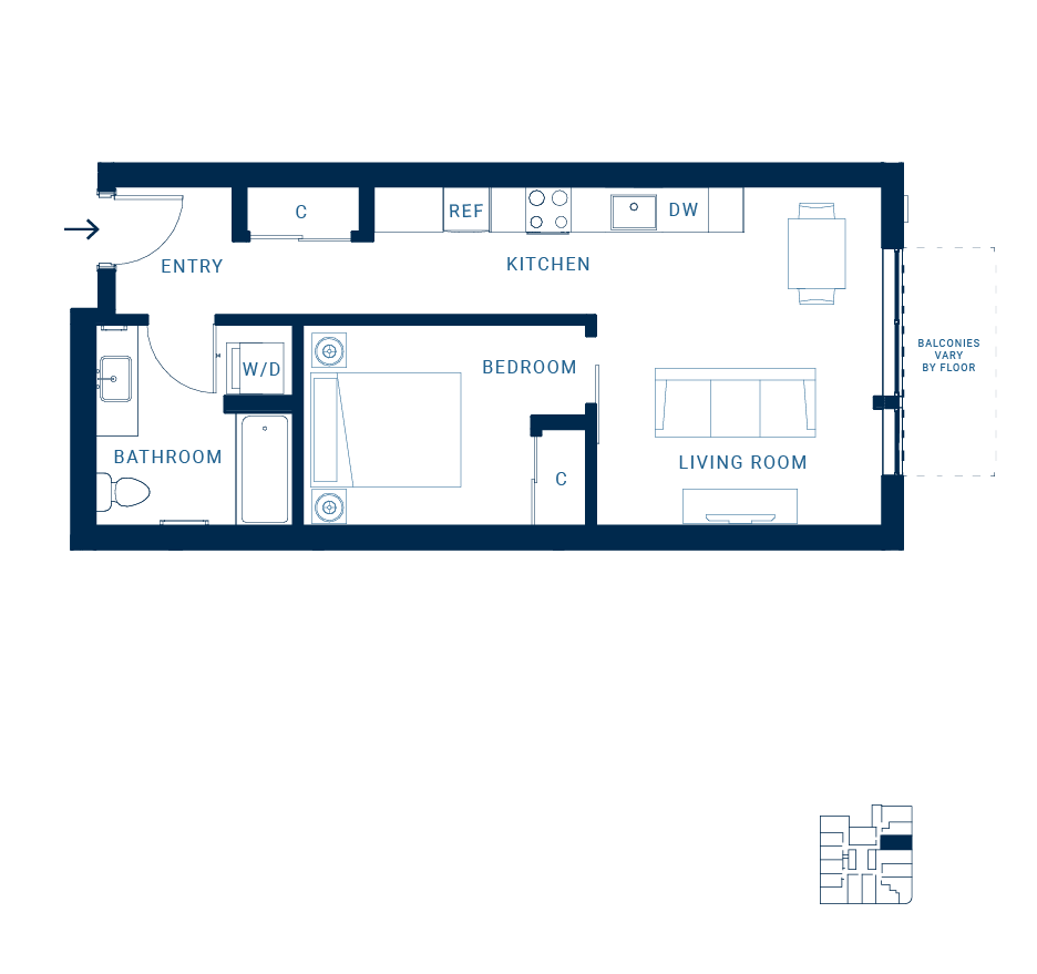 Estudio, 1 Baño, 383-515 pies²Galería del Modelo