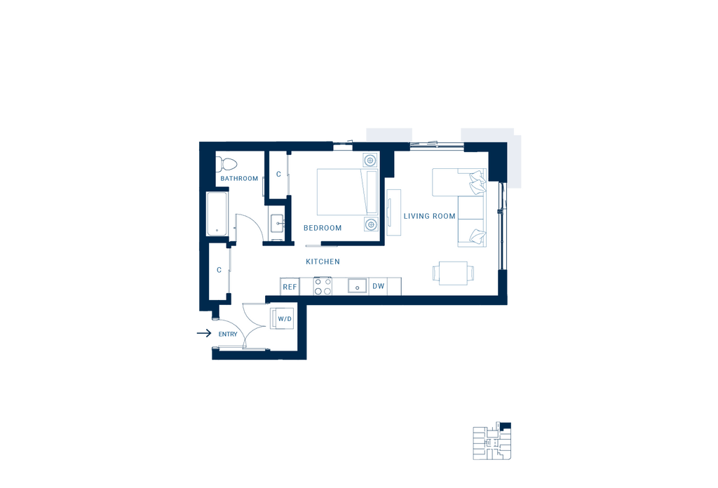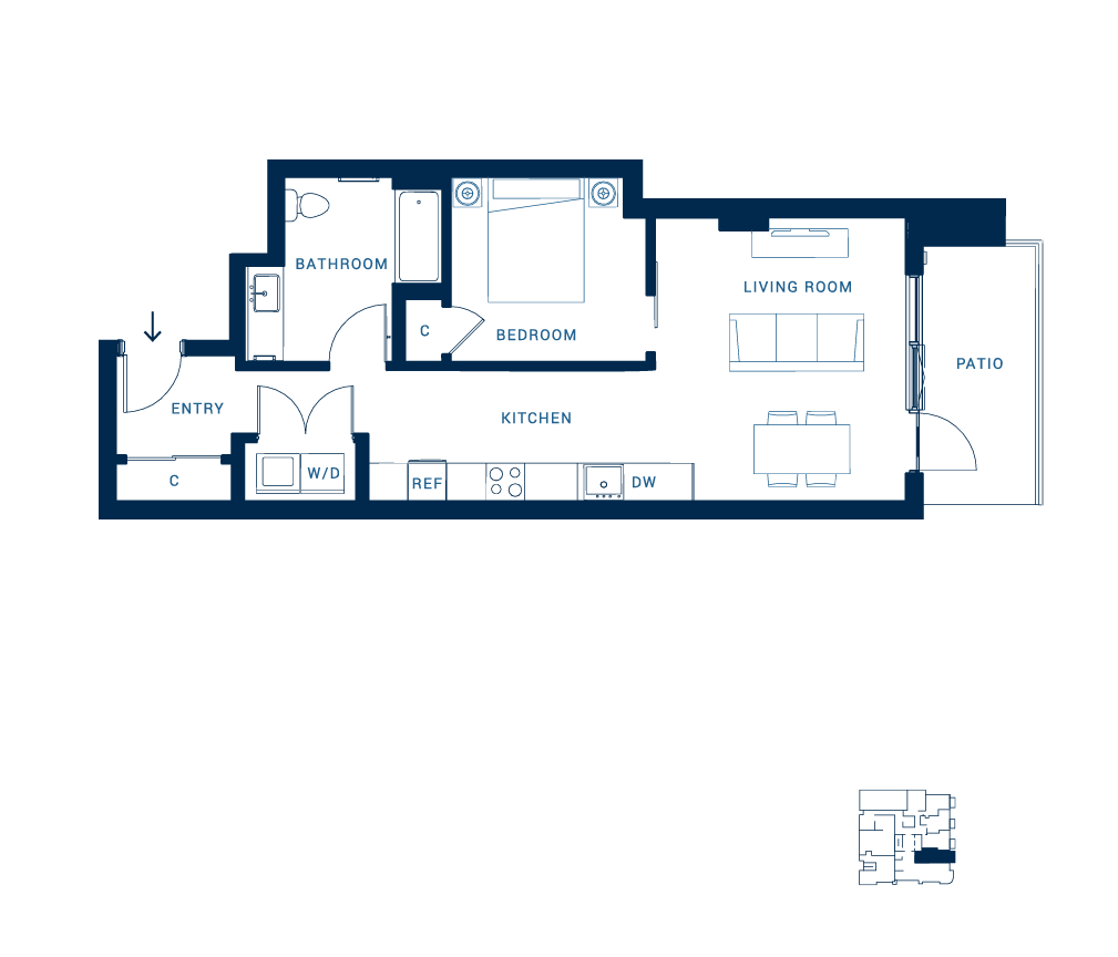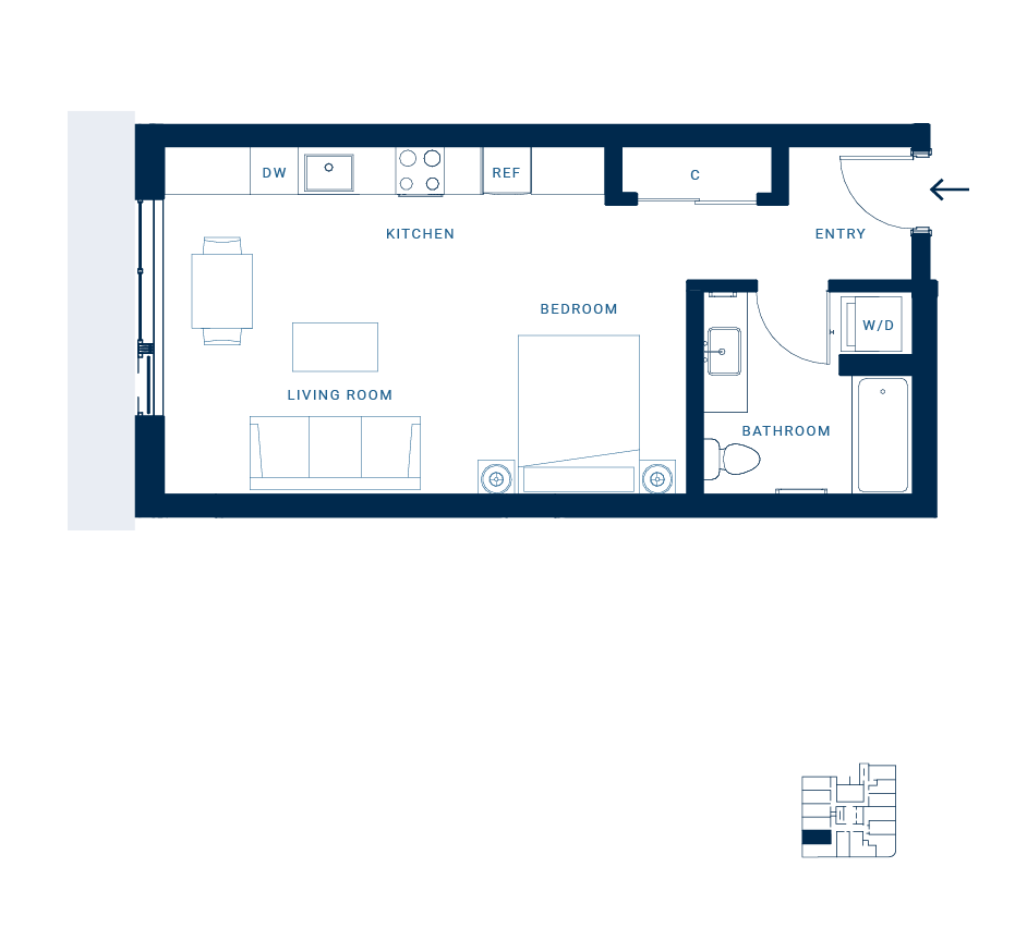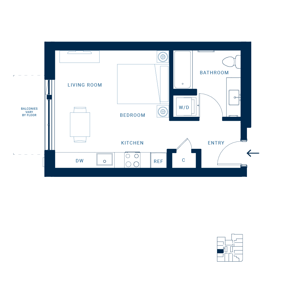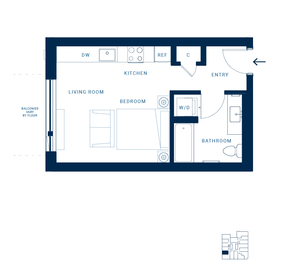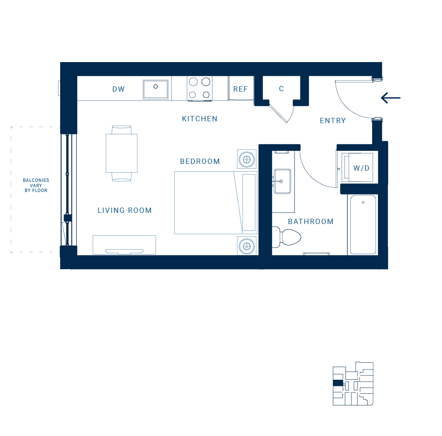 Modelo de apartamento: Studio DLlame para PreciosEstudio, 1 Baño, 389 sq ftNo Disponible![]()