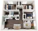 Modelo de apartamento: Two BedroomLlame para Precios2 Dormitorios, 1 Baño, 625-710 sq ftNo DisponibleTwo Bedroom - Plano 1 3 Dormitorios