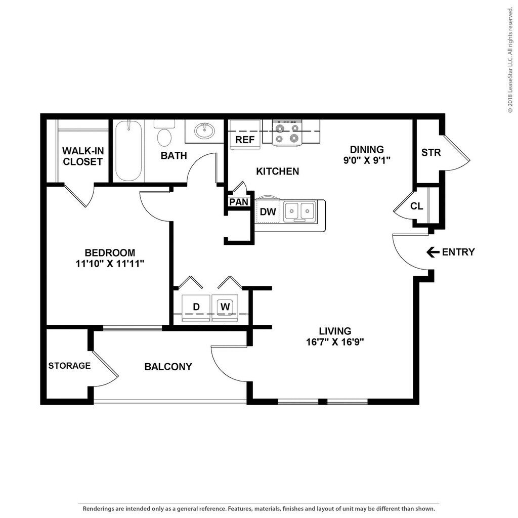1 Dormitorio, 1 Baño, 769 pies²Disponible AhoraGalería del Modelo