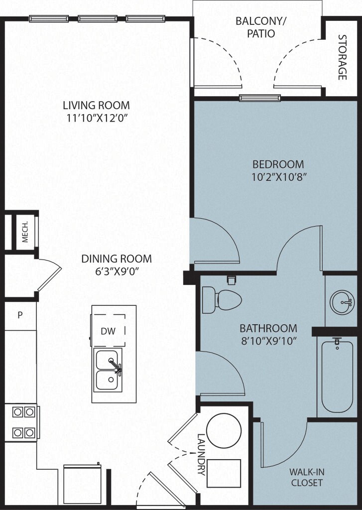 Modelo de apartamento: A1$8491 Dormitorio, 1 Baño, 621 sq ftDisponible Ahora![]()