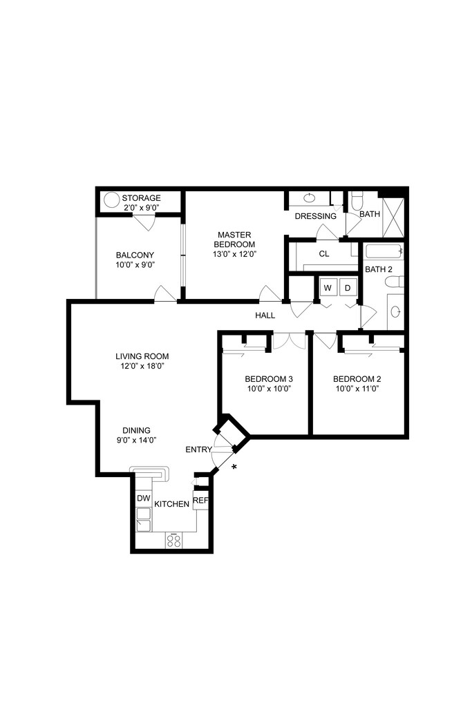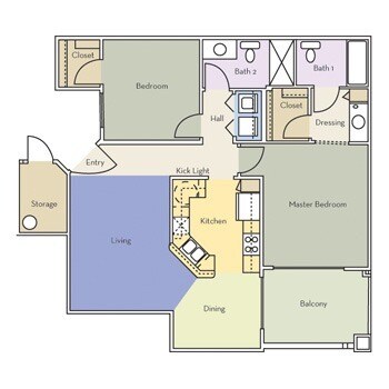 Modelo de apartamento: A2RDesde $1,4171 Dormitorio, 1 Baño, 920 sq ftDisponible Ahora![]()