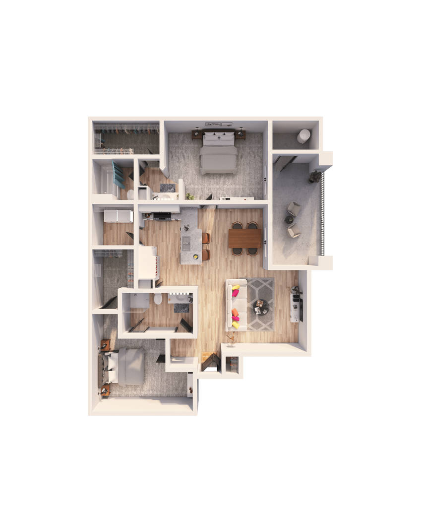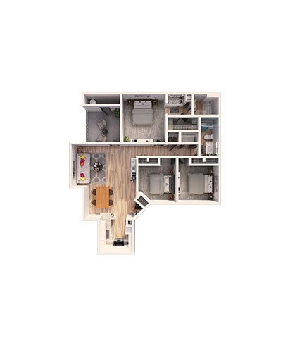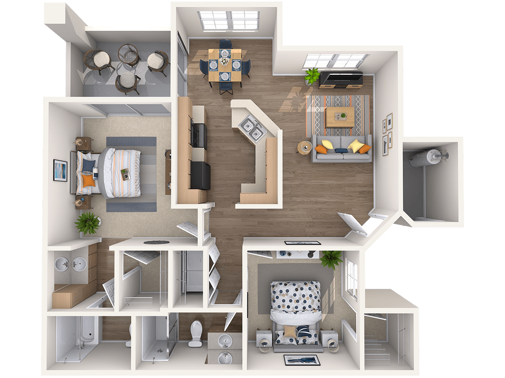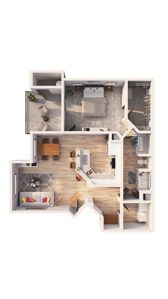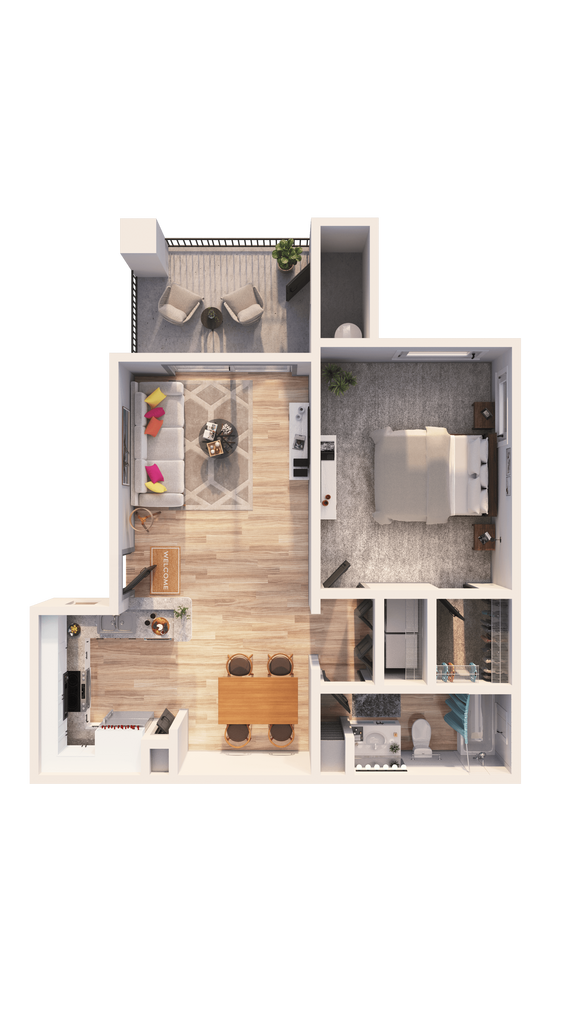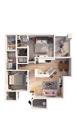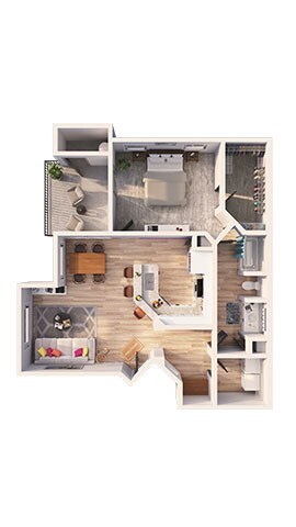 Modelo de apartamento: A1RDesde $1,2961 Dormitorio, 1 Baño, 832 sq ftDisponible Ahora![]()