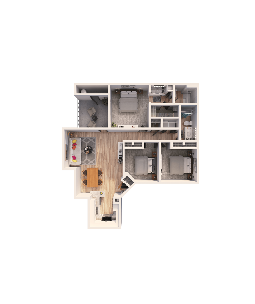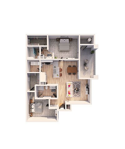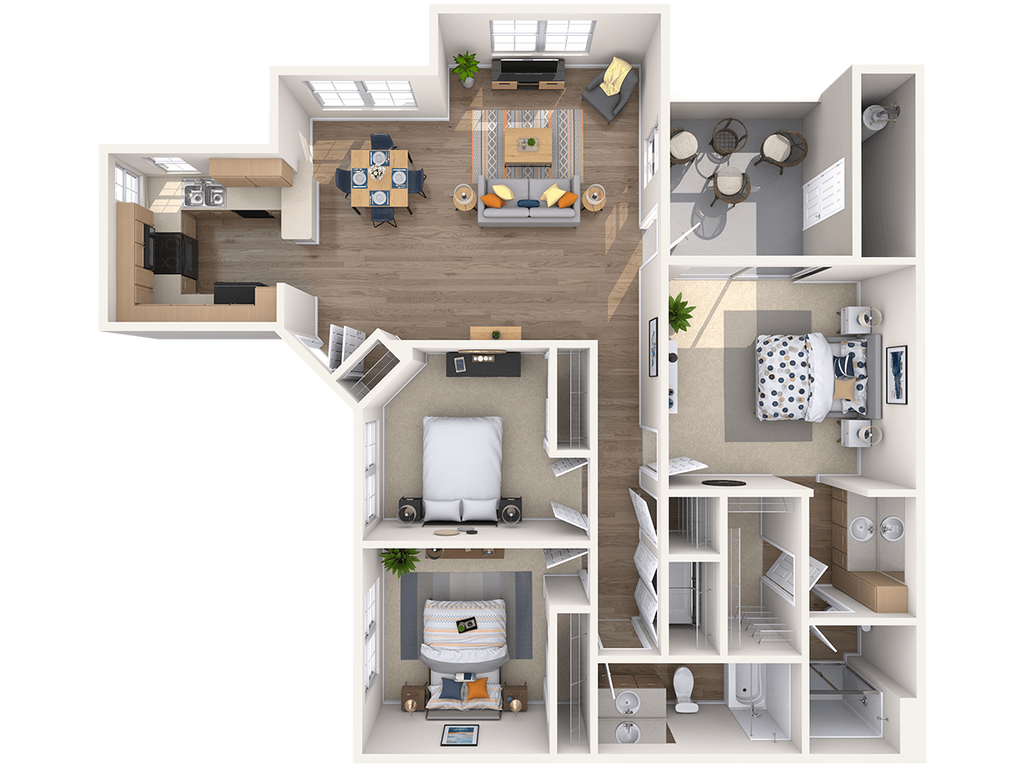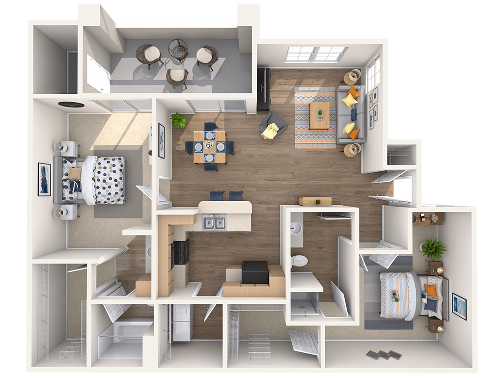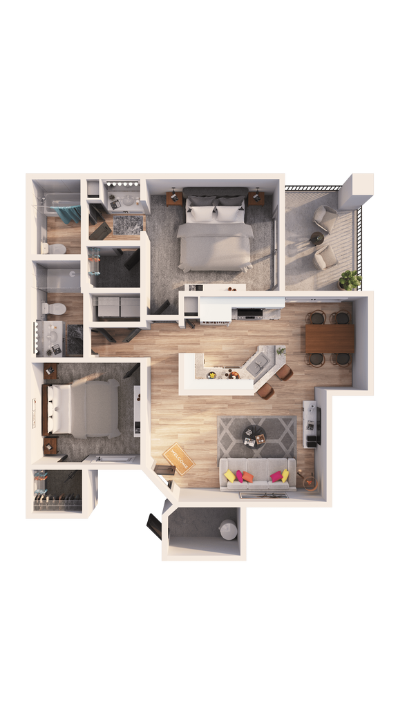 Modelo de apartamento: A1RDesde $1,2961 Dormitorio, 1 Baño, 832 sq ftDisponible Ahora![]()