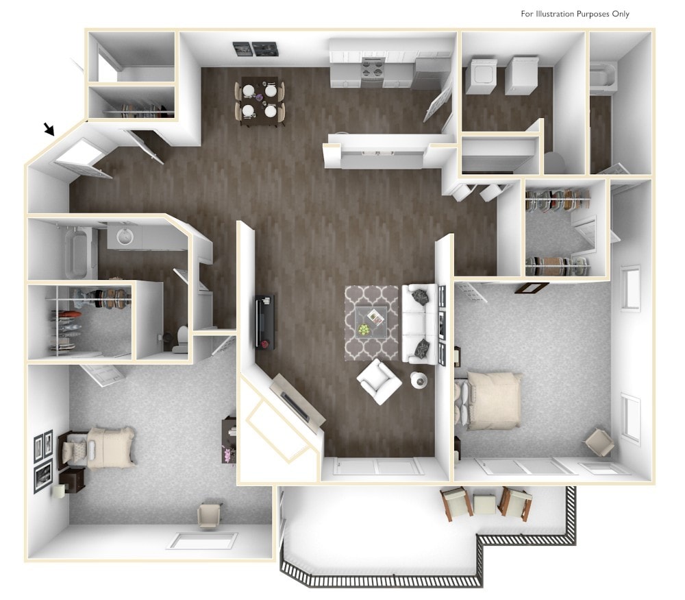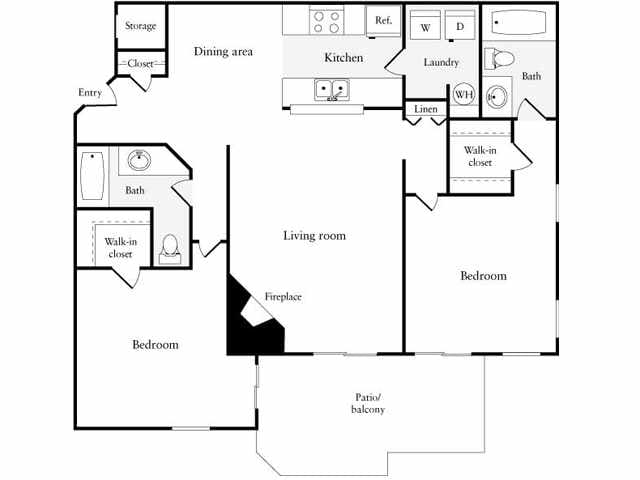 Modelo de apartamento: B1Desde $2,3992 Dormitorios, 1 Baño, 906 sq ftDisponible AhoraPlanosFotos![]()