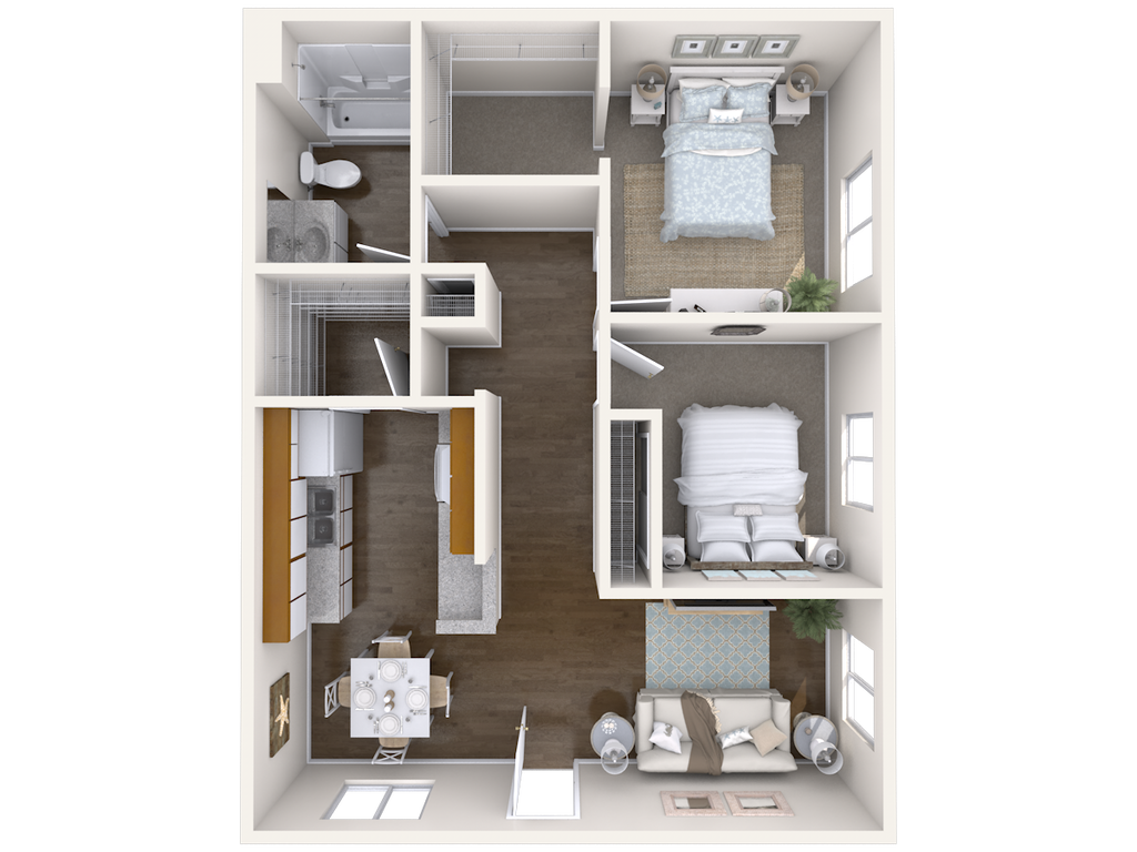 2 Dormitorios, 1 Baño, 778 pies²Galería del Modelo