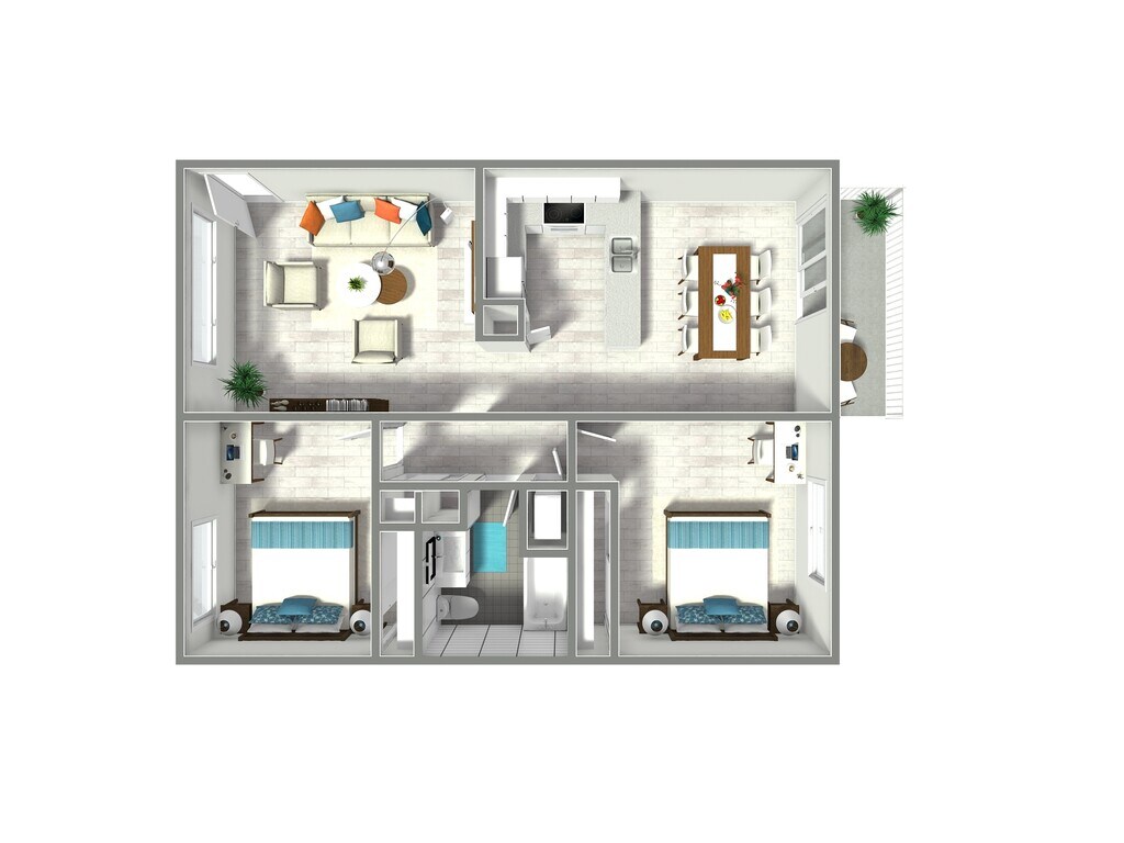 Modelo de apartamento: 2Bed 1Bath Deluxe$2,2992 Dormitorios, 1 Baño, 875 sq ftDisponible Ahora![]()