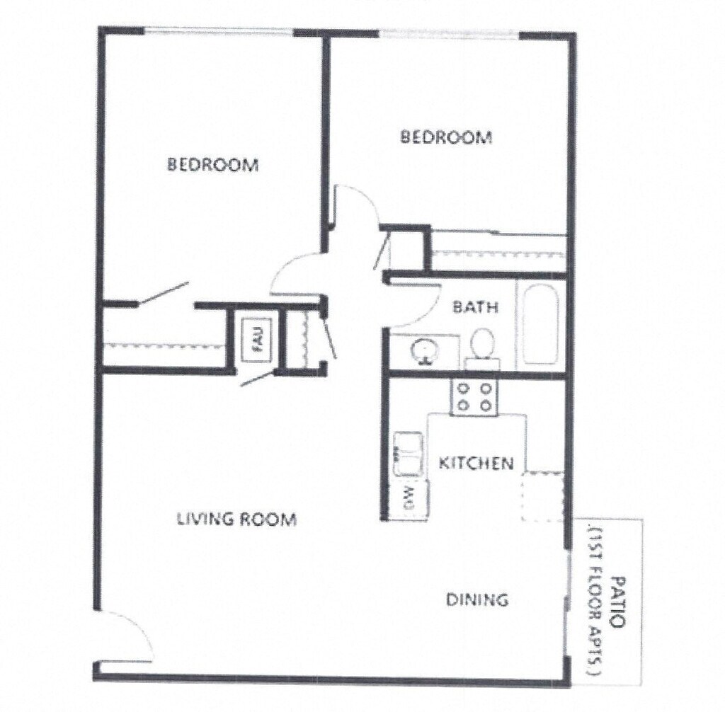 2Bed 1Bath Deluxe - Plano 2 Unidad de apartamento: 24Modelo de apartamento: 2Bed 1Bath Deluxe$2,2992 Dormitorios, 1 Baño, 875 sq ftDisponible Ahora