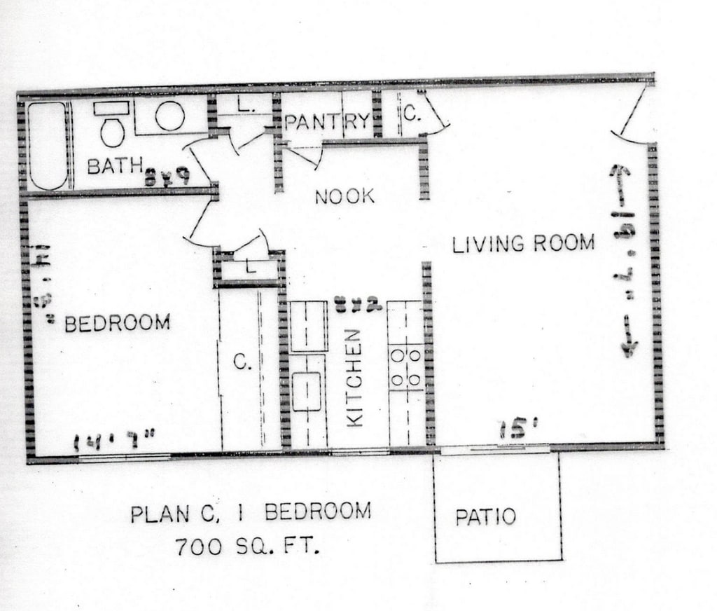 1 Dormitorio, 1 Baño, 700 pies²Galería del Modelo