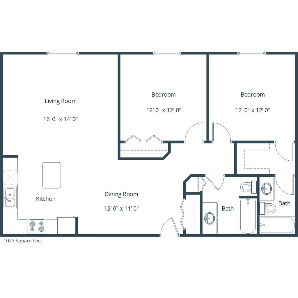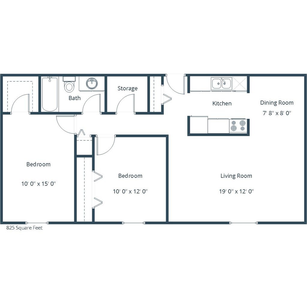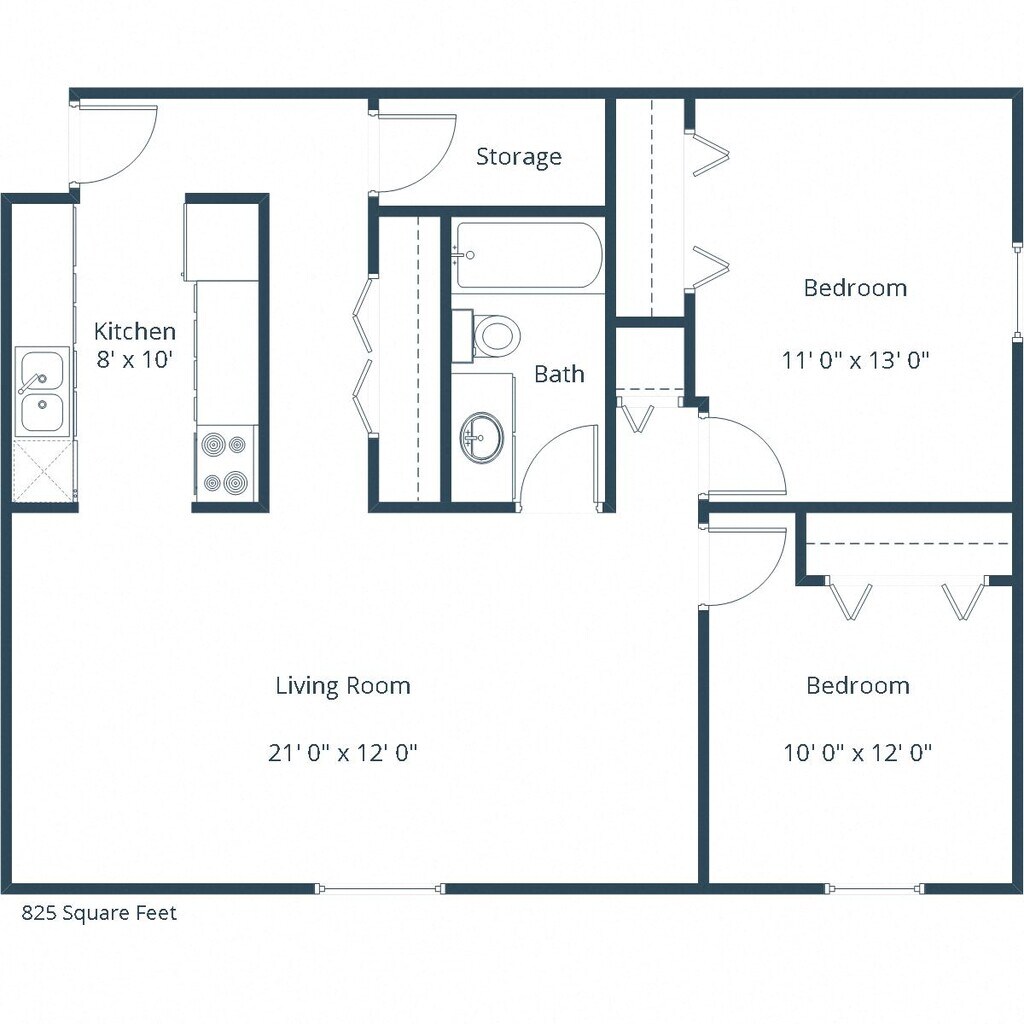 2 Dormitorios, 1 Baño, 825 pies²Galería del Modelo