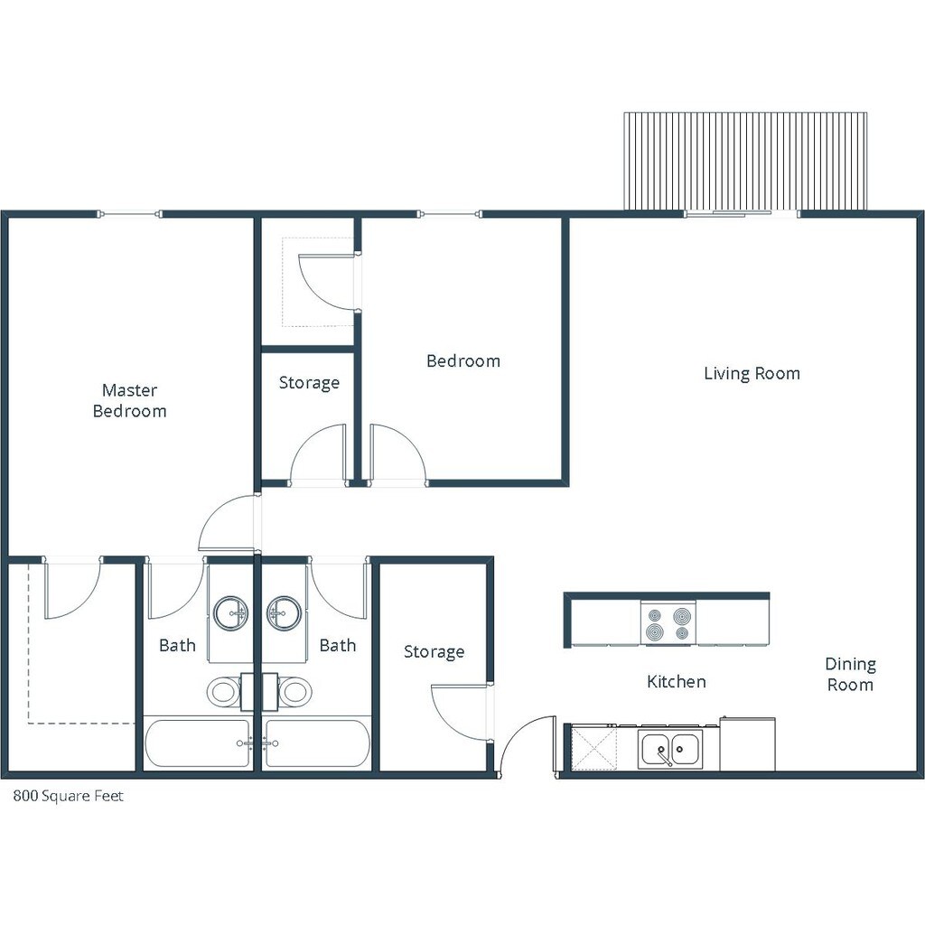 2 Dormitorios, 2 Baños, 800 pies²Galería del Modelo