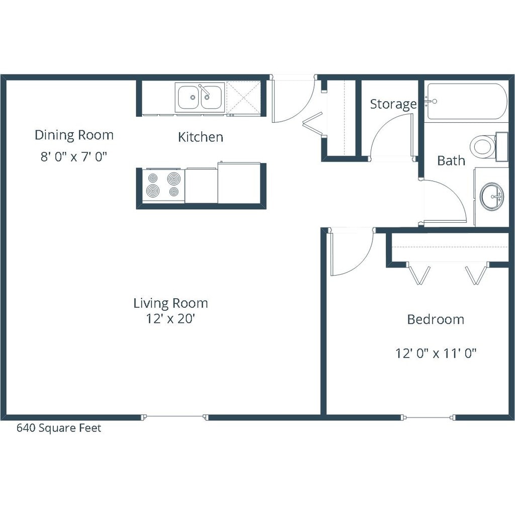 1 Dormitorio, 1 Baño, 640 pies²Galería del Modelo