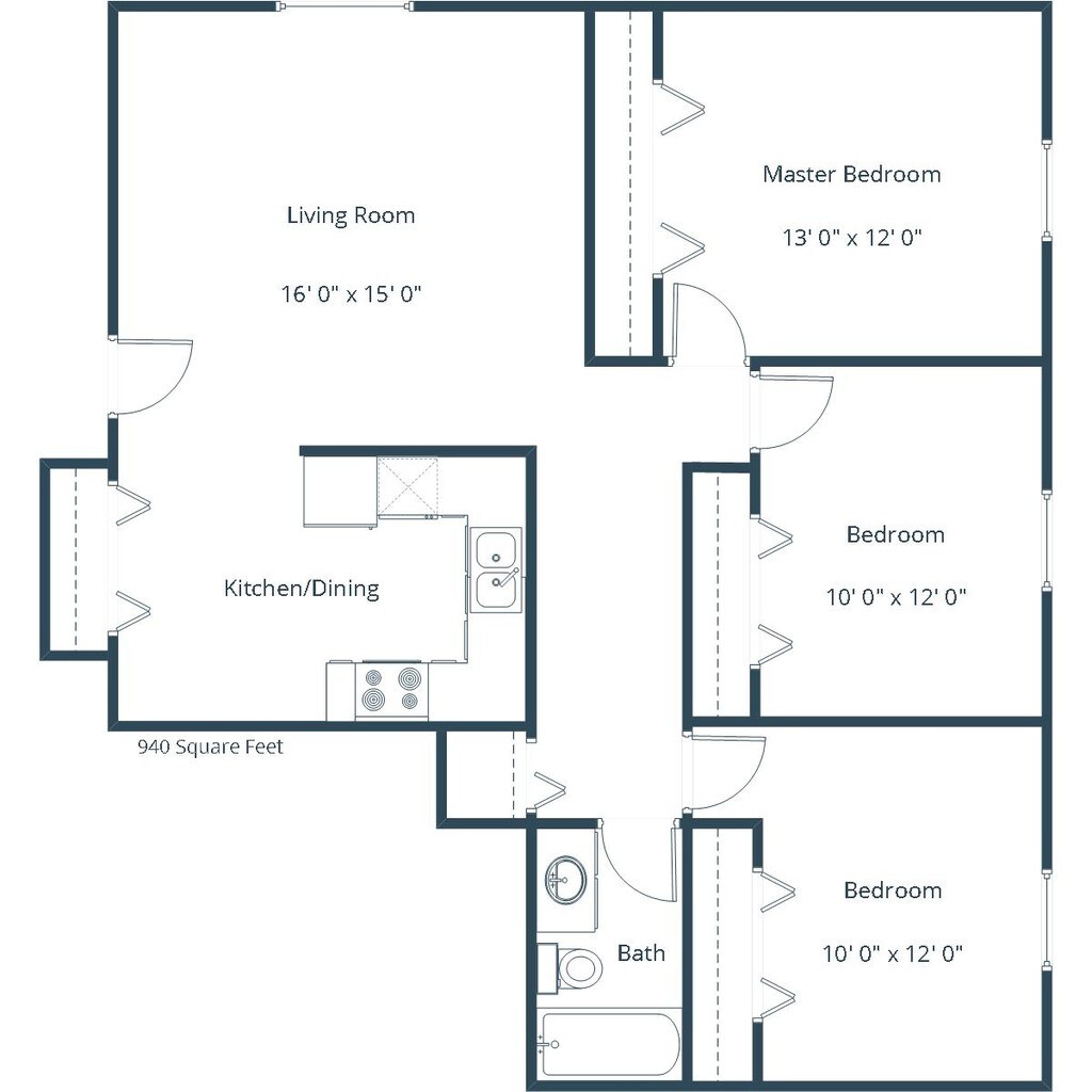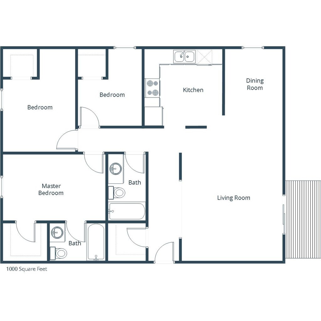 1 Dormitorio, 1 Baño, 725 pies²El más grandeEsta opción tiene las unidades más grandes para este modeloGalería del Modelo