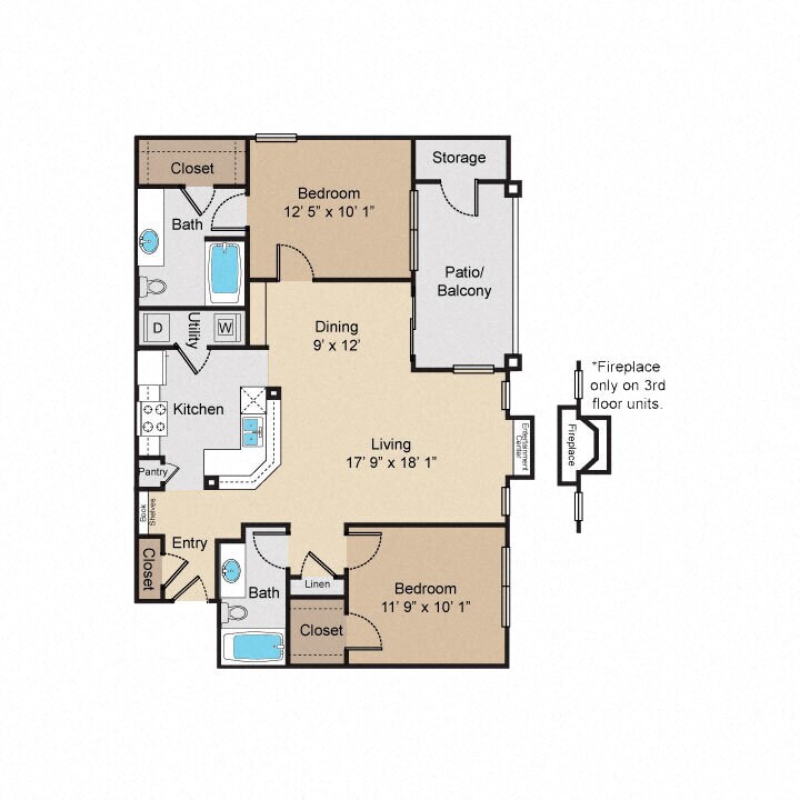 Modelo de apartamento: B3Desde $1,3192 Dormitorios, 2 Baños, 1145 sq ftDisponible Ahora![]()