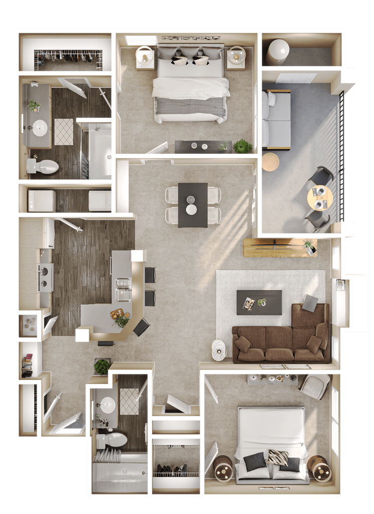 Modelo de apartamento: B2Desde $1,2992 Dormitorios, 2 Baños, 1052 sq ftDisponible Ahora![]()